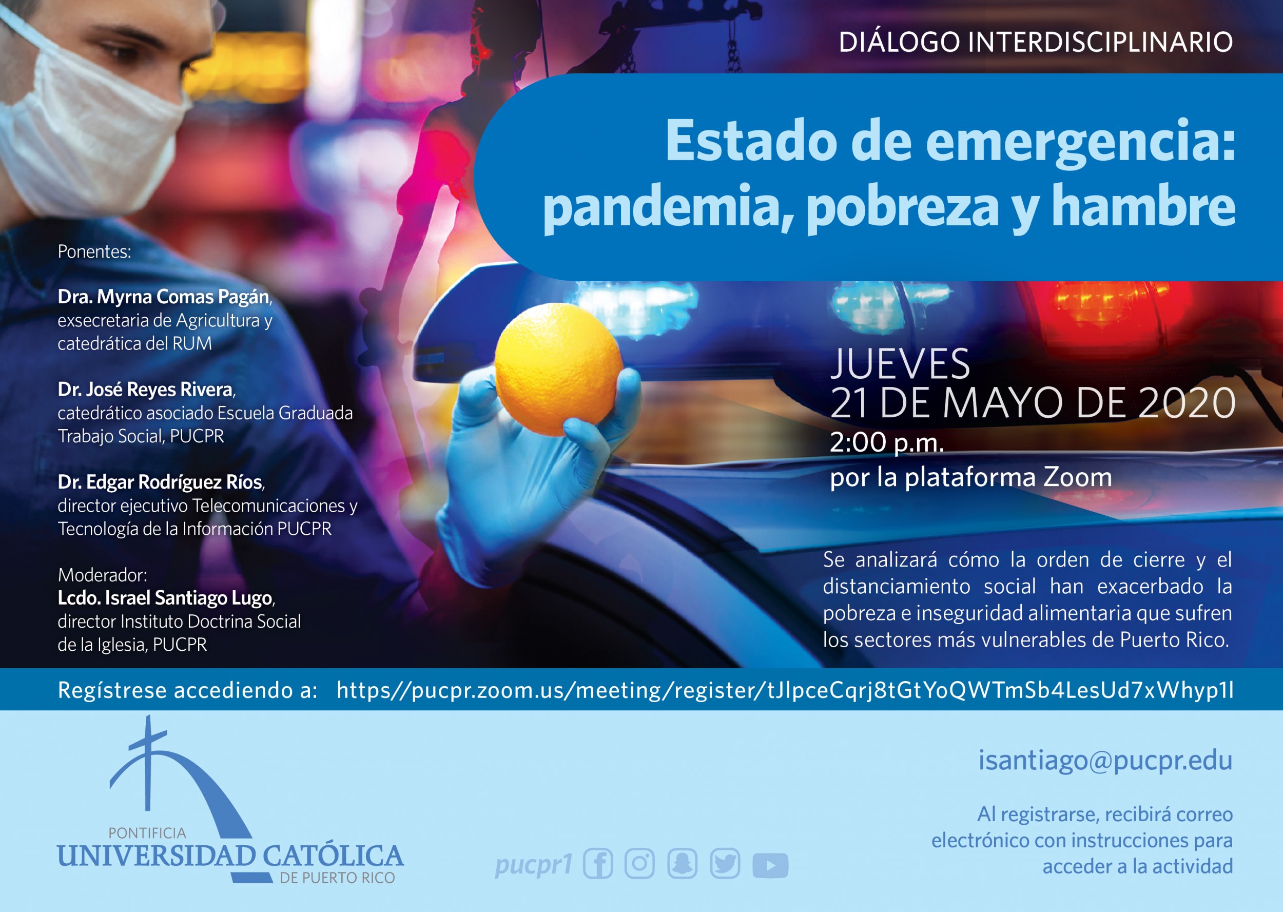 Estado de emergencia: pandemia, pobreza y hambre By celimer_torres@pucpr.edu | May 15, 2020 Instituto de Doctrina Social de la Iglesia celebra diálogo interdisciplinario. Posted in General ← Día del #PioneroInvencible COVID-19 desnuda y agrava la pobreza y el hambre →