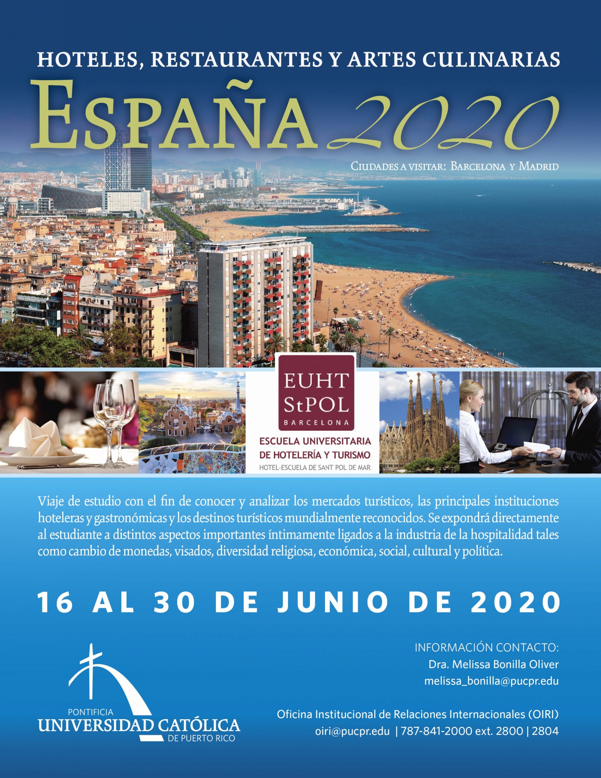 ¡Estudia en España! By celimer_torres@pucpr.edu | February 13, 2020 No te pierdas la oportunidad de aprender de hoteles, restaurantes y artes culinarias desde España. Posted in General ← La Católica apoya a estudiantes del sistema público afectados por terremotos¡Listos los Pioneros! →