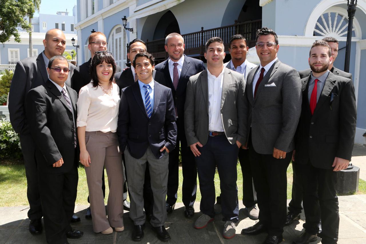 El grupo de estudiantes de la Escuela de Arquitectura con el gobernador, Alejandro García Padilla en la Fortaleza.