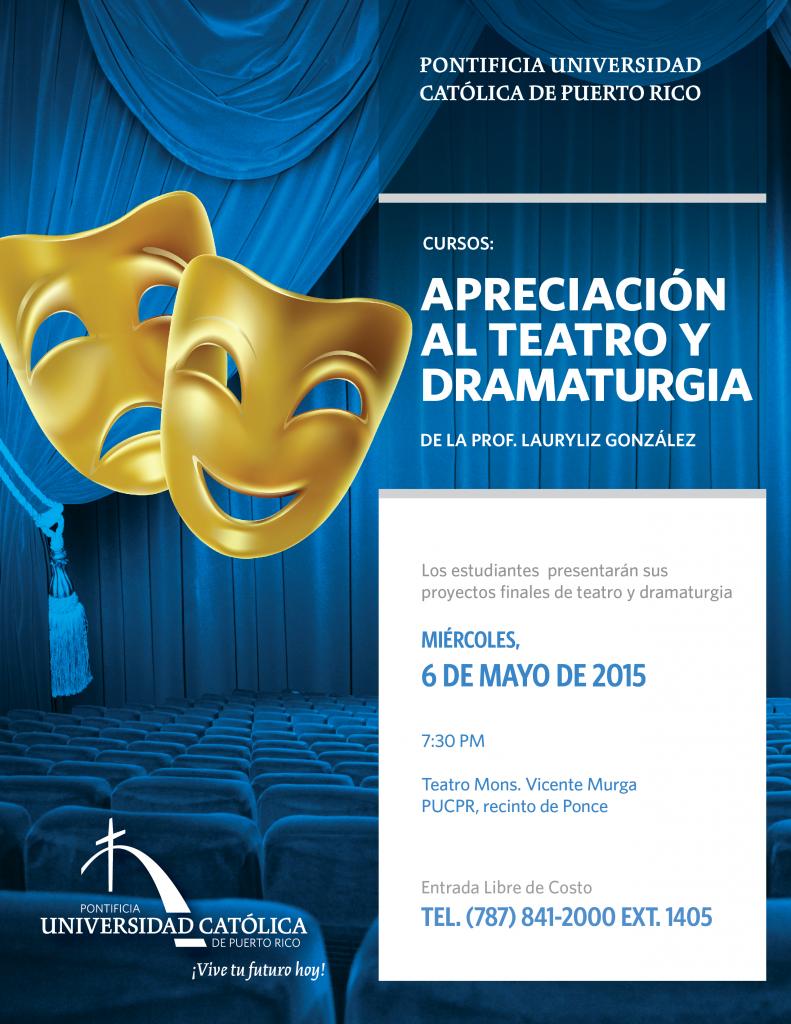 Estudiantes presentan proyectos de apreciación al teatro y dramaturgia By celimer_torres@pucpr.edu | May 1, 2015 Posted in General ← PUCPR sede de encuentro de líderes Walking tour por la Ciudad Señorial →