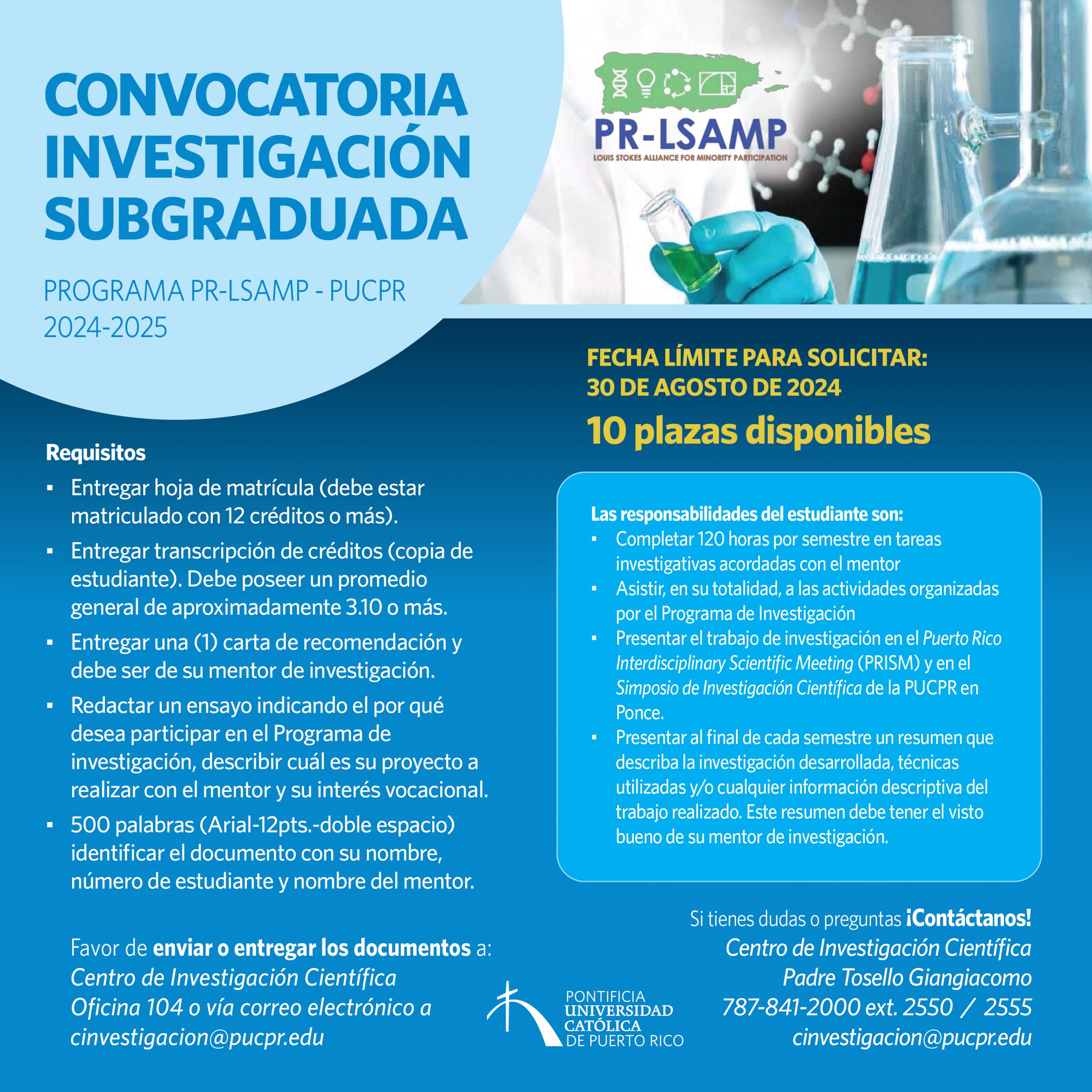 ¡Explora, descubre e investiga! By celimer_torres@pucpr.edu | August 16, 2024 El programa PR -LSAMP PUCPR busca 10 investigadores que cursen estudios subgraduados Posted in General ← “Vivamos en Armonía” con la International Chamber Orchestra of Puerto RicoAdiós a una Pionera amante del deporte →