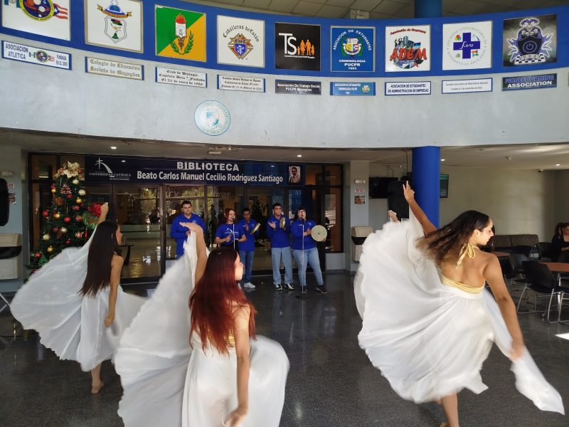 Los estudiantes Pioneros disfrutaron de una vibrante presentación del Católica Dance Team del recinto de Mayagüez y de la Agrupación Musical Pionera, quienes unieron talentos para presentar una pieza artística. Su presentación destacó el valor de nuestras raíces y la importancia de preservar las tradiciones que construyen nuestra identidad como pueblo.