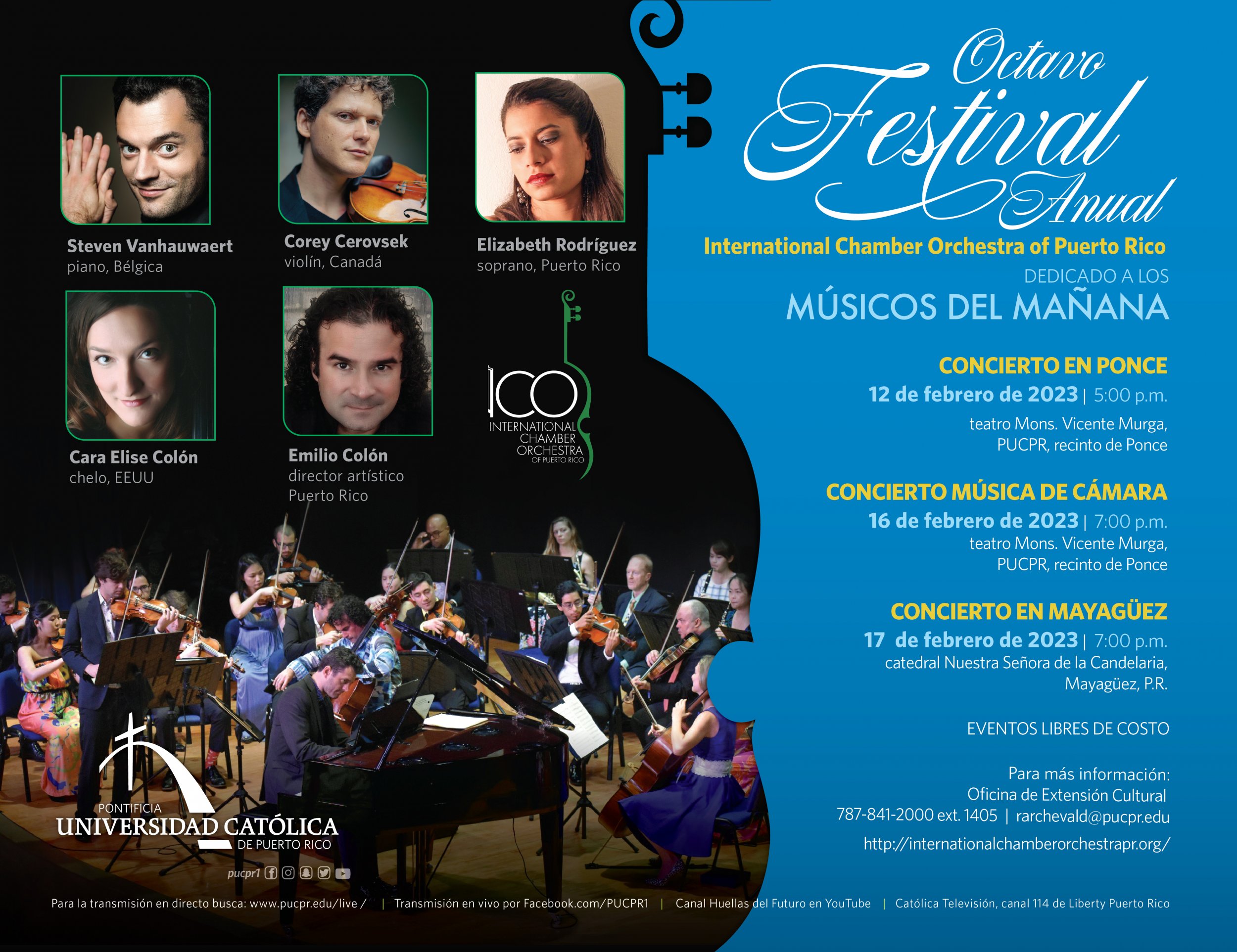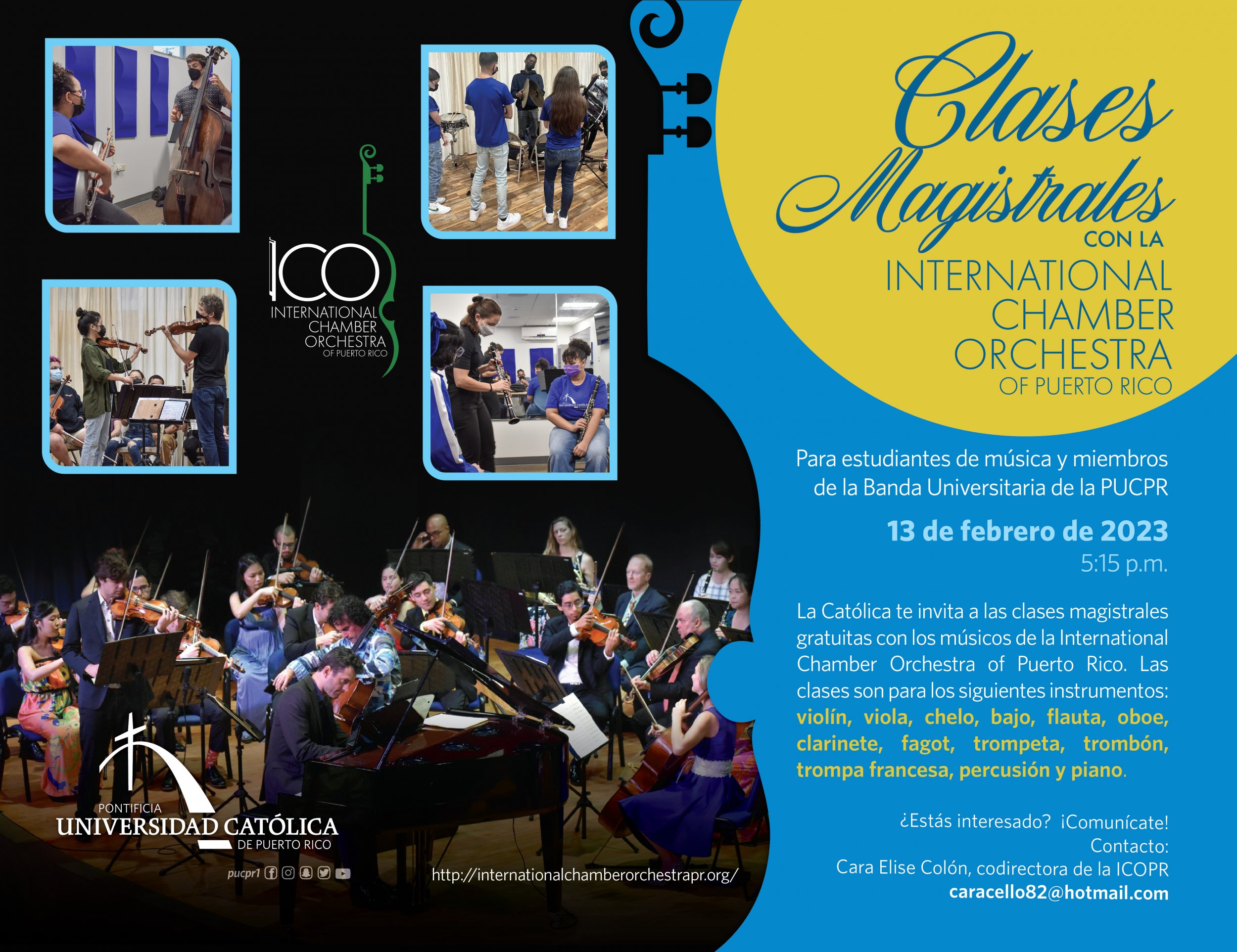 Festín musical con el International Chamber Orchestra of Puerto Rico By celimer_torres@pucpr.edu | January 26, 2023 La afamada orquesta presentará una serie de conciertos, Master Classes y encuentros con los músicos Posted in General ← ¡Celebra con nosotros el Día del Amor y la Amistad!¡Comienza la acción deportiva! →