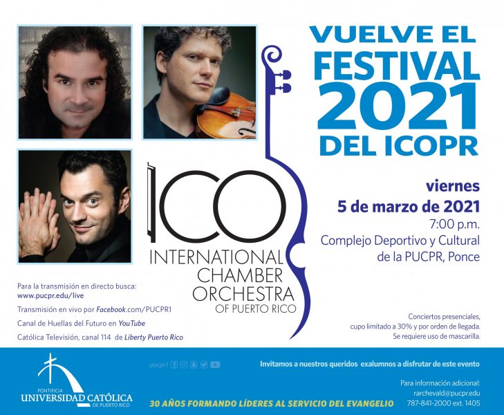 Para disfrutar del Festival 2021 del International Chamber Orchestra of Puerto Rico oprima en los siguientes enlaces: