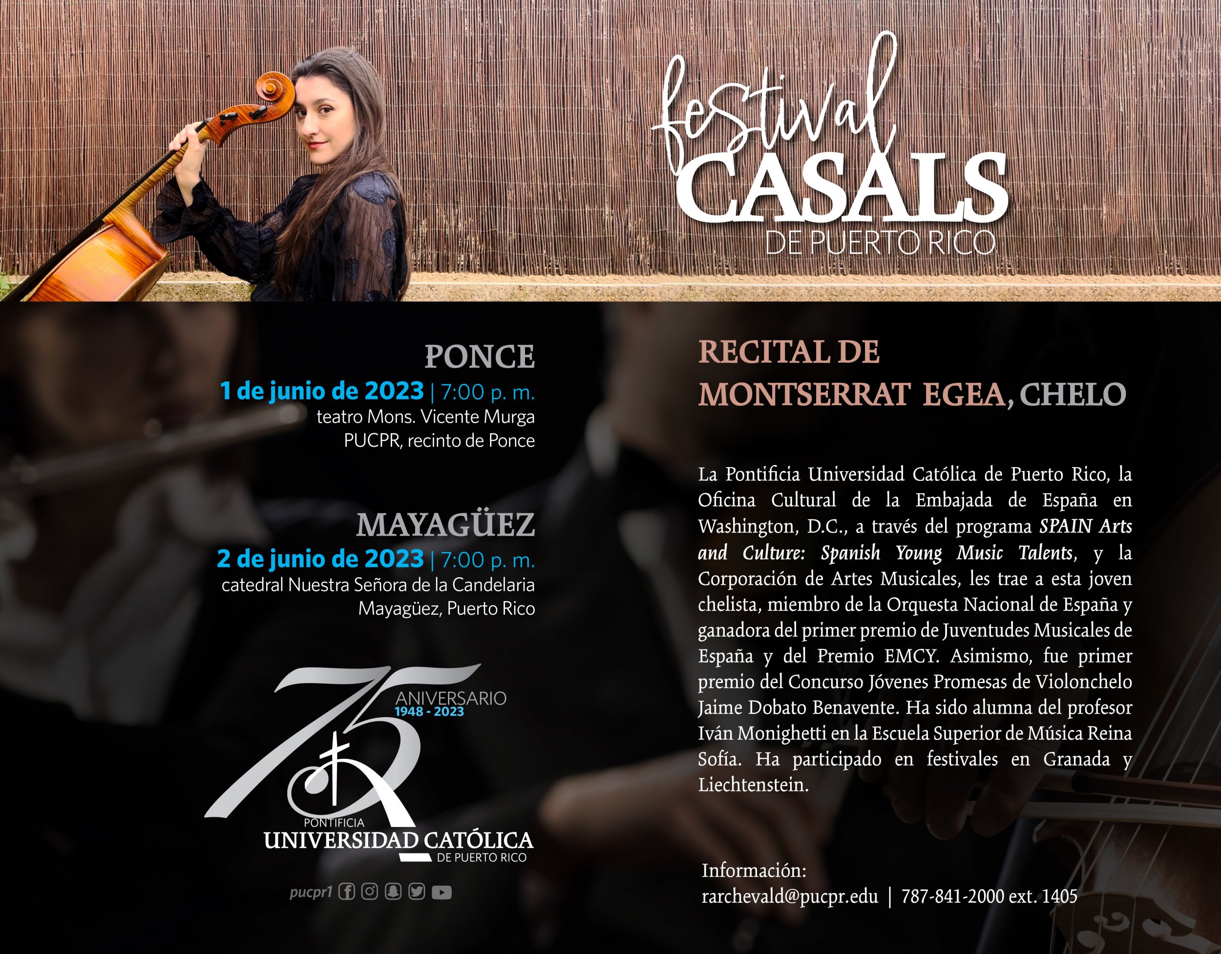 Festival Casals de Puerto Rico By celimer_torres@pucpr.edu | May 18, 2023 La chelista Montserrat Egea se presenta en Ponce y en Mayagüez. Posted in General ← ¡Queremos tu foto!Conquistan al público con Voces a Europa →
