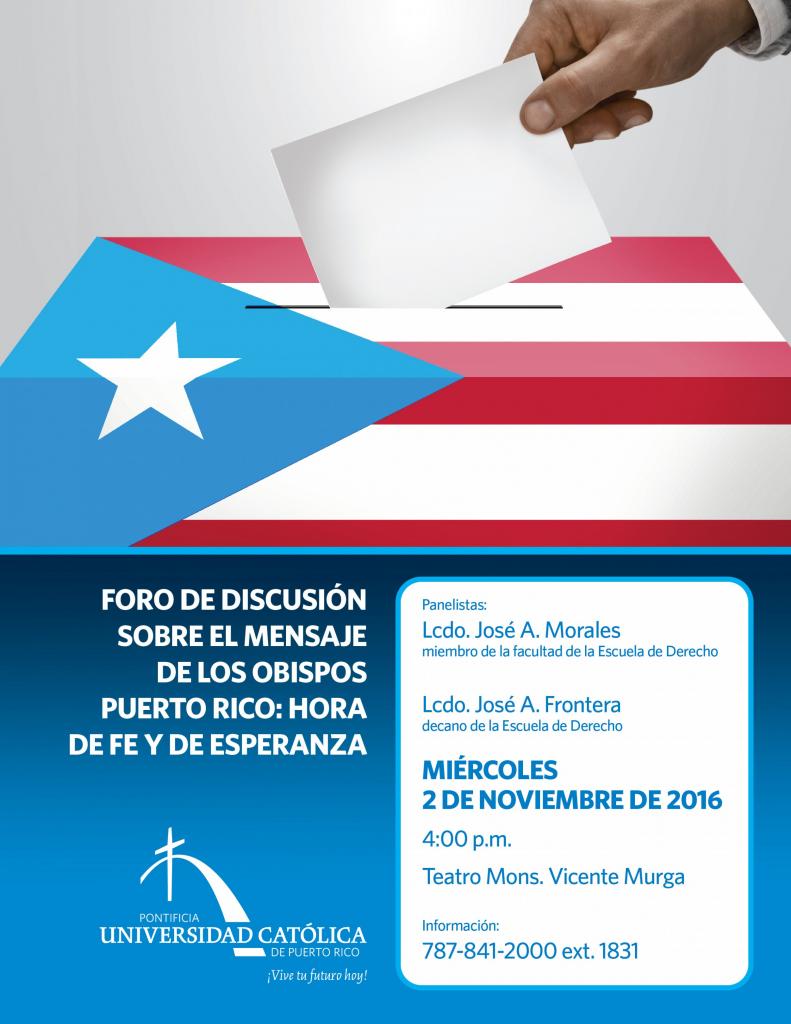 Foro de Discusión sobre el Mensaje de los Obispos By celimer_torres@pucpr.edu | October 24, 2016 Posted in General ← Educación para todosRosario Viviente Misericordioso →