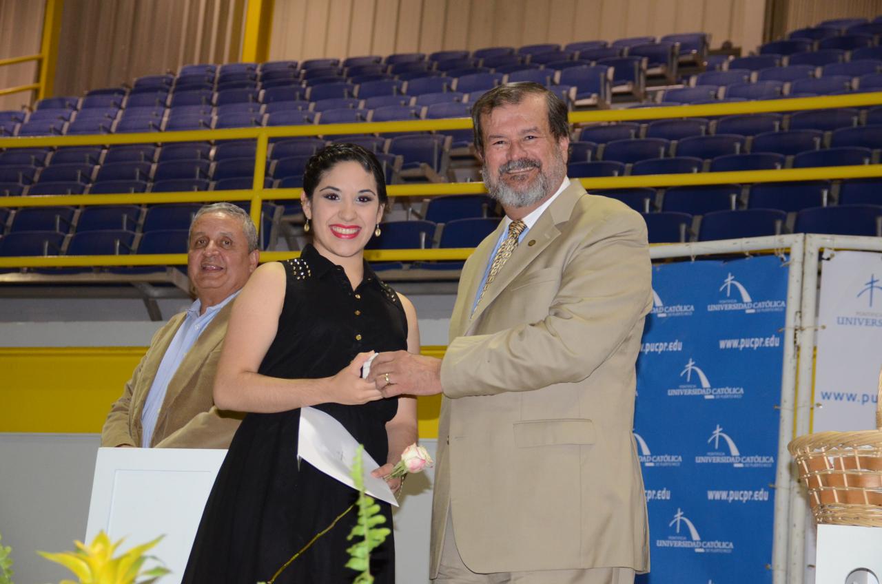 Esta distinción se entregó durante una ceremonia en el Complejo Deportivo y Cultural de la PUCPR el jueves, 25 de abril de 2013. Contó con la presencia del conjunto de guitarra de la Escuela Libre de Música de Ponce y de las Abanderadas de la PUCPR.