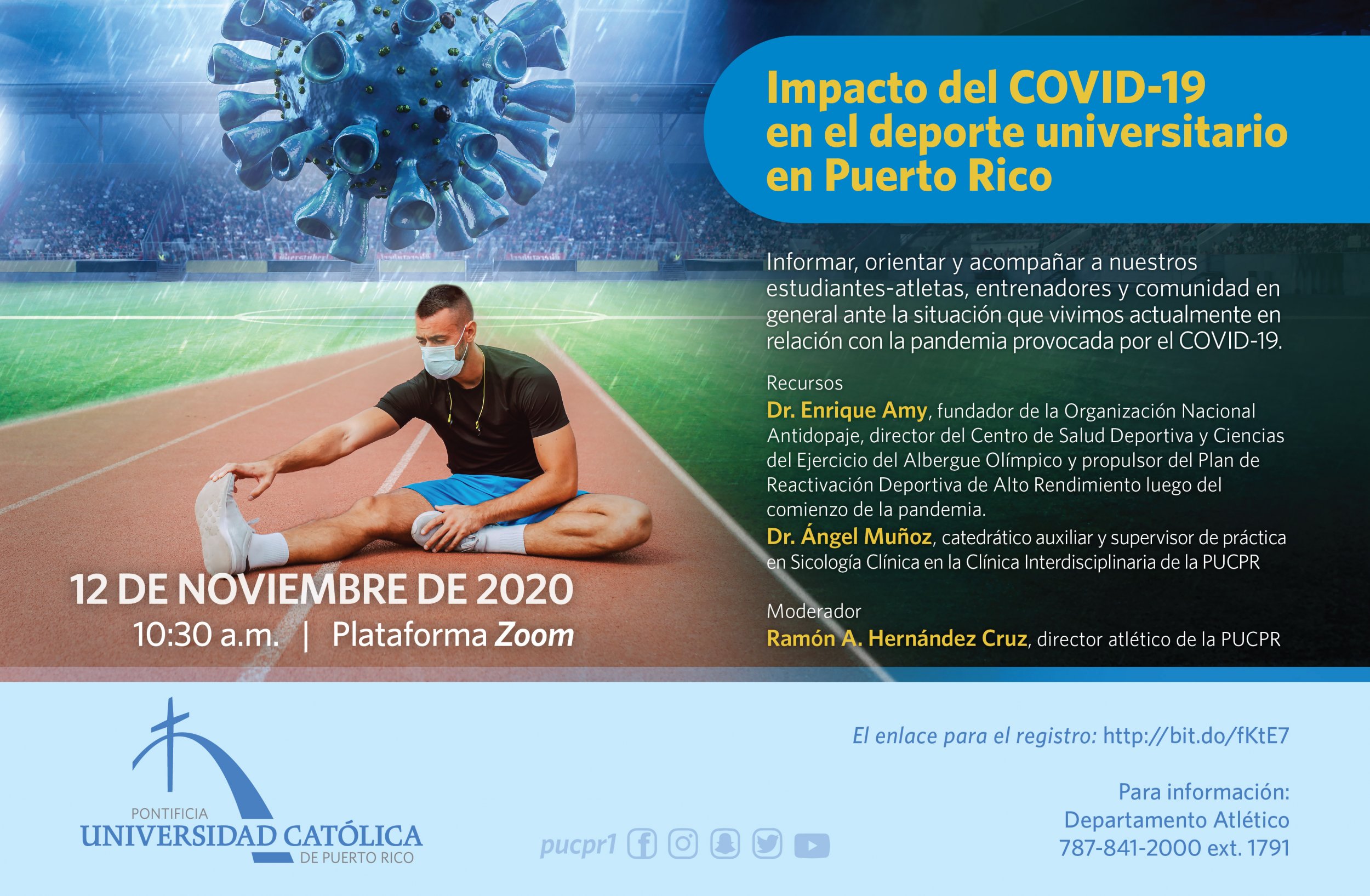 Impacto del COVID-19 en el deporte universitario By celimer_torres@pucpr.edu | October 30, 2020 Panel conversa con atletas, entrenadores y comunidad sobre el impacto de la pandemia en este sector. Posted in General ← Tradicional entrega de pavos para Acción de GraciasAquí se forjan los PIONEROS →