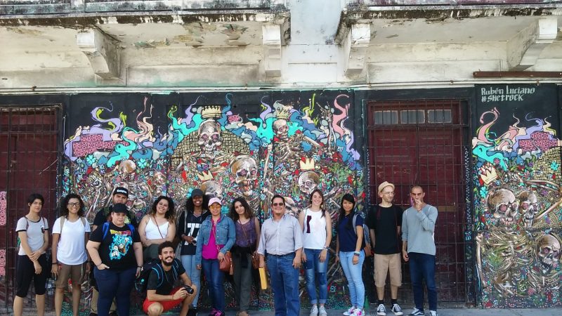 Recientemente se llevó a cabo la segunda gira de muralismo, con la participación de trece estudiantes de Bellas Artes y uno de Historia, acompañados por la Profa. Sylvia Damary Burgos. En esta ocasión, el grupo visitó la Galería de los Gigantes para ver la exhibición fotográfica Ciudades desconocidas donde fueron recibidos por el fotógrafo, Marvin Fonseca Barahona, periodista y autor del libro Puerto Rico: museo al aire libre. Luego se dirigieron, junto a su anfitrión, a presenciar los trabajos artísticos que componen la sexta edición de Santurce es Ley.
