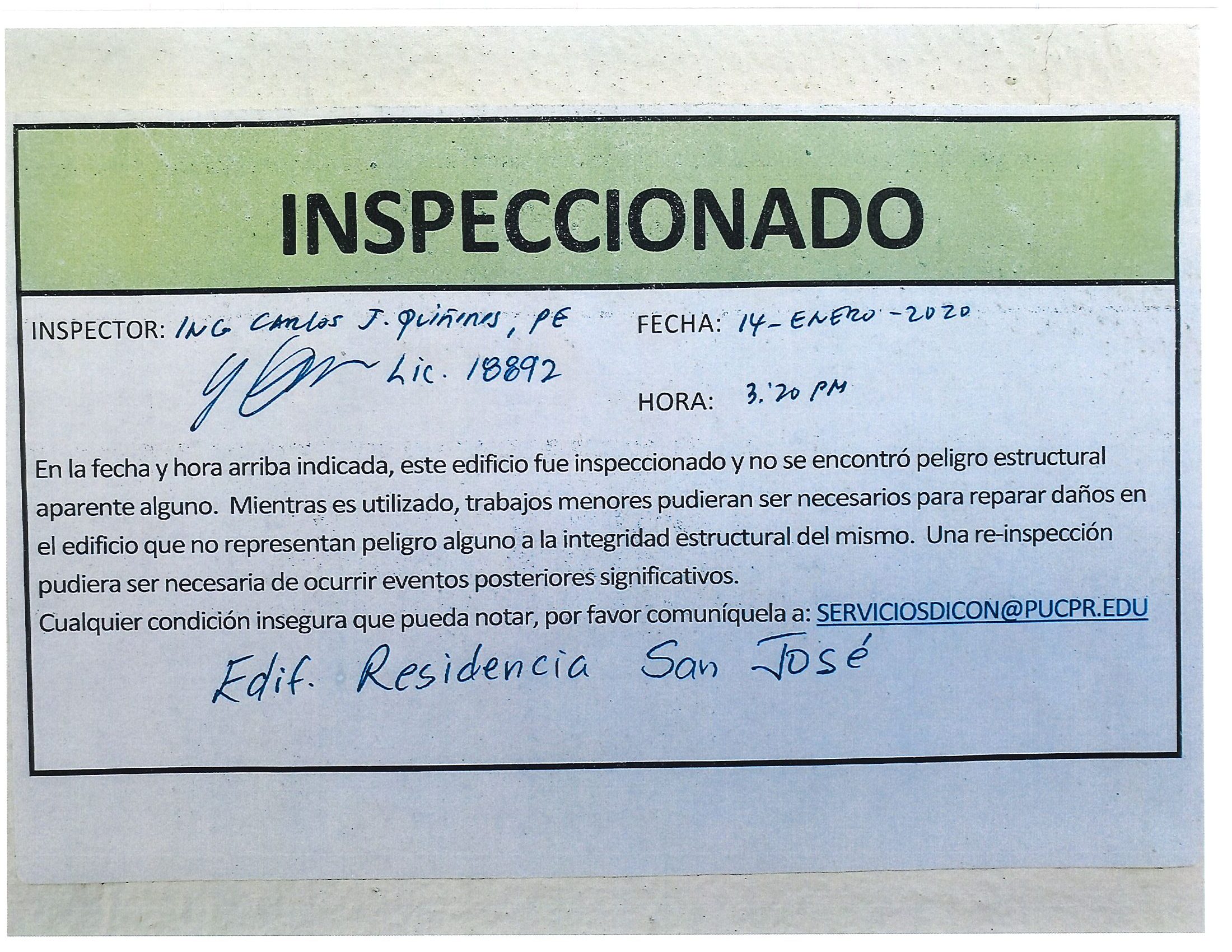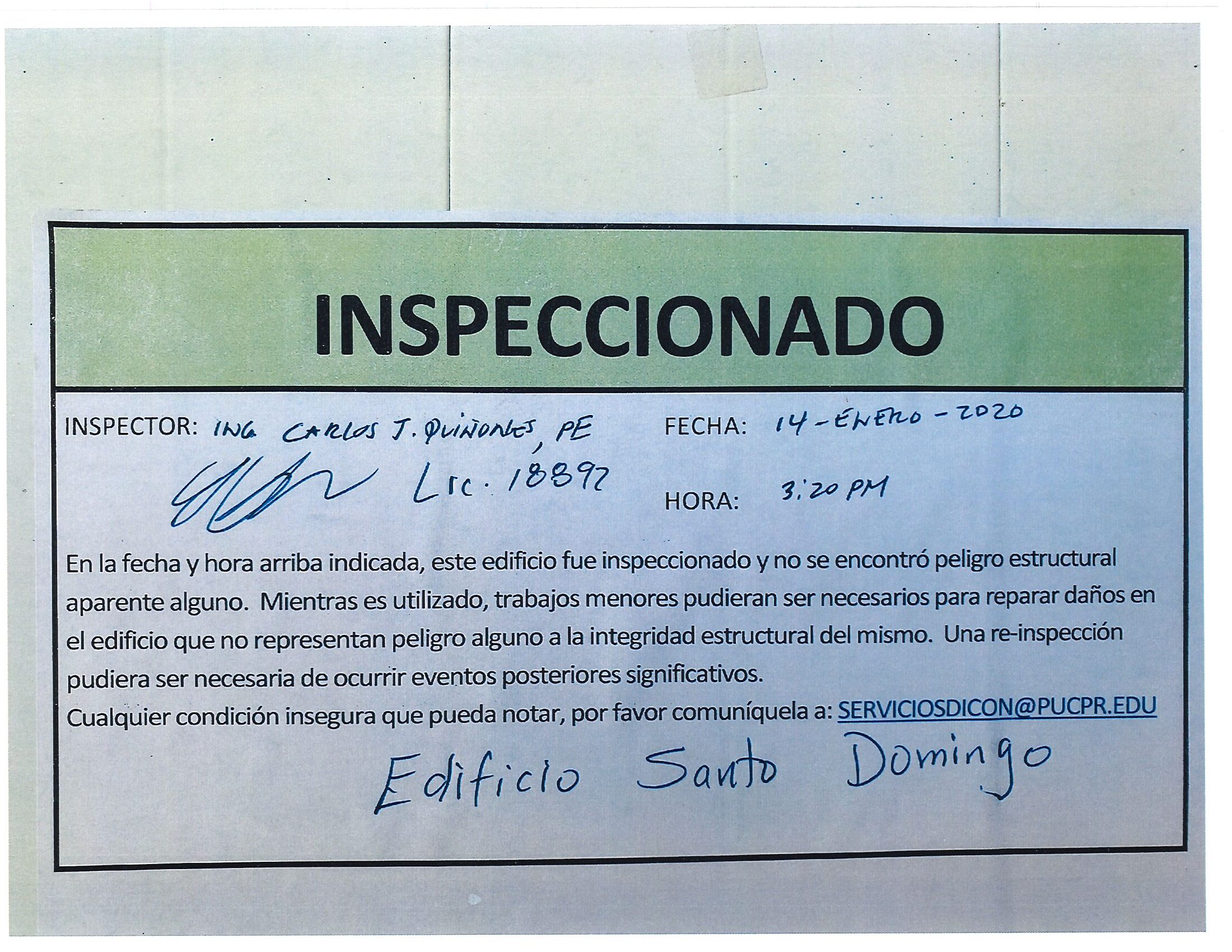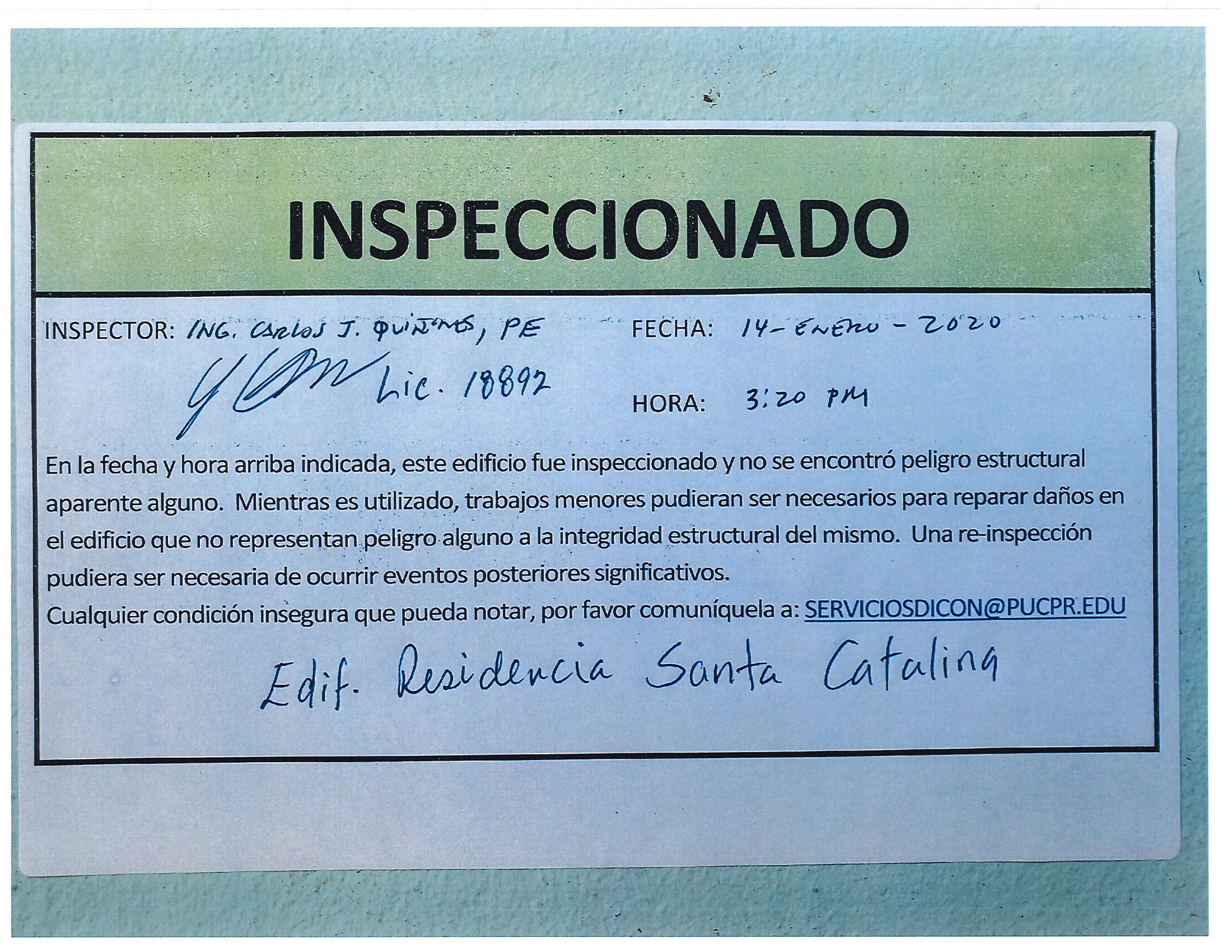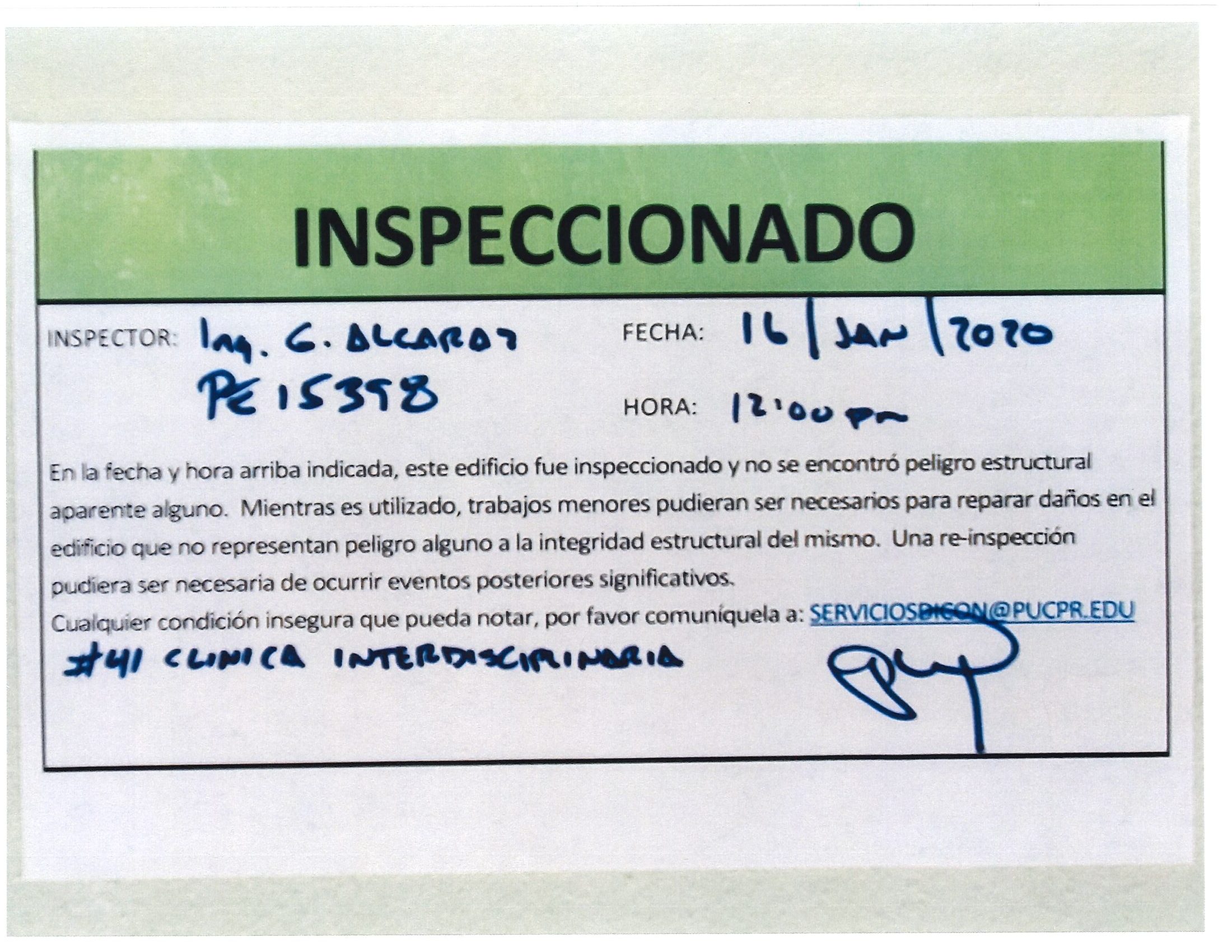 Actualización de inspección de los edificios By celimer_torres@pucpr.edu | January 20, 2020 Estos edificios están aptos para su uso. Posted in General ← Inicia proceso de matrícula en los tres recintosEn manos Pioneras la reconstrucción de la zona sur. →