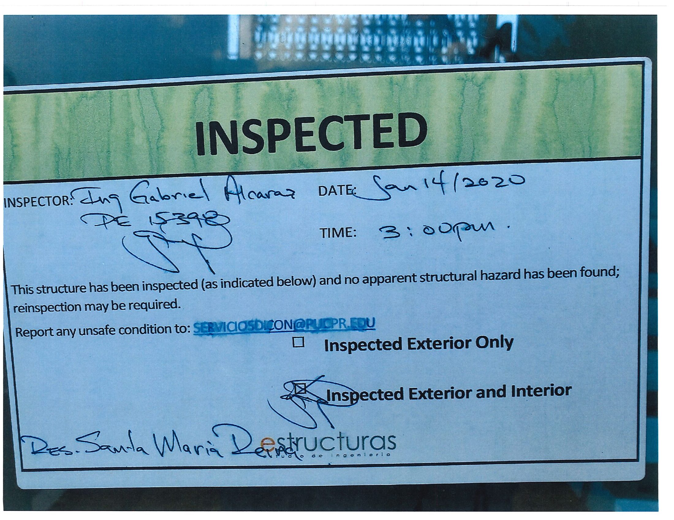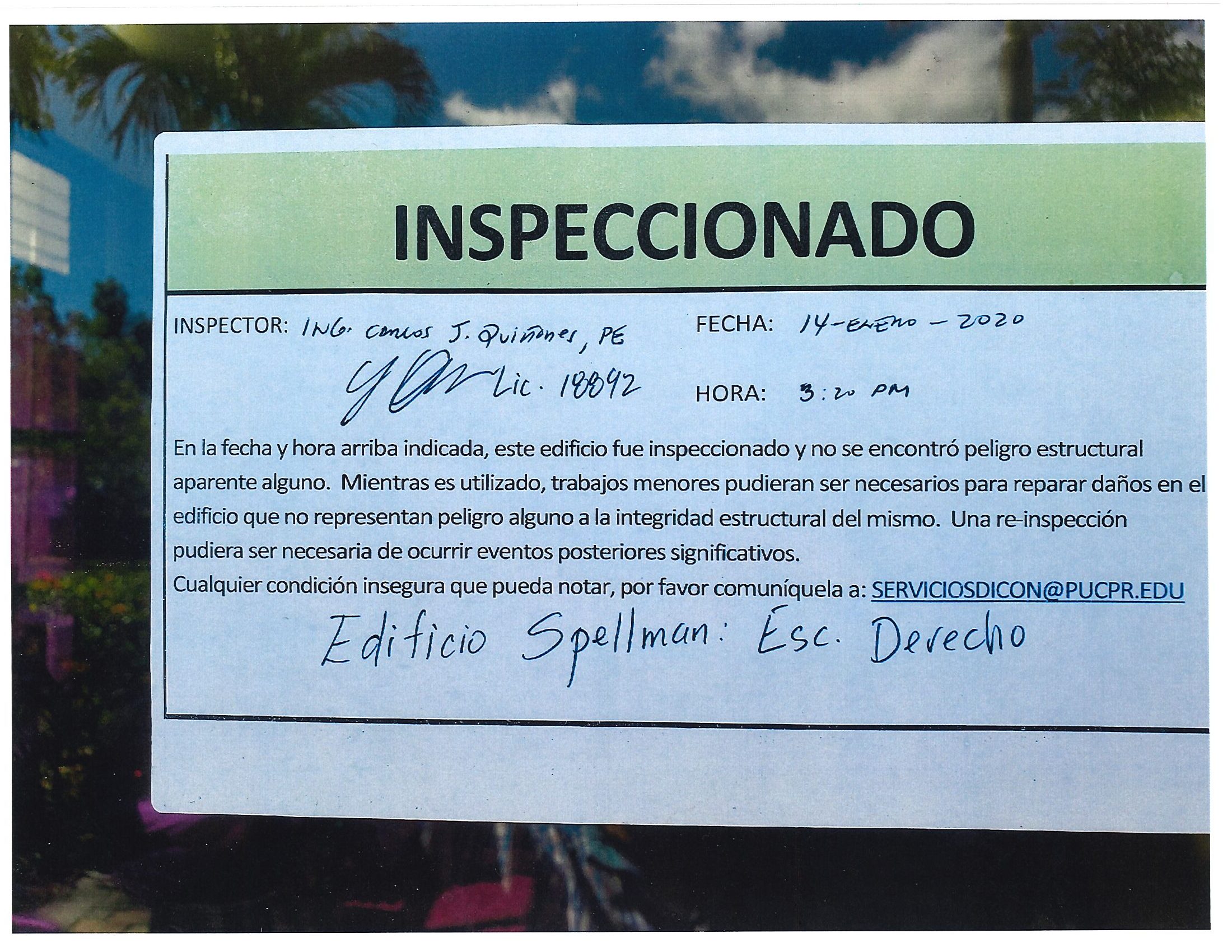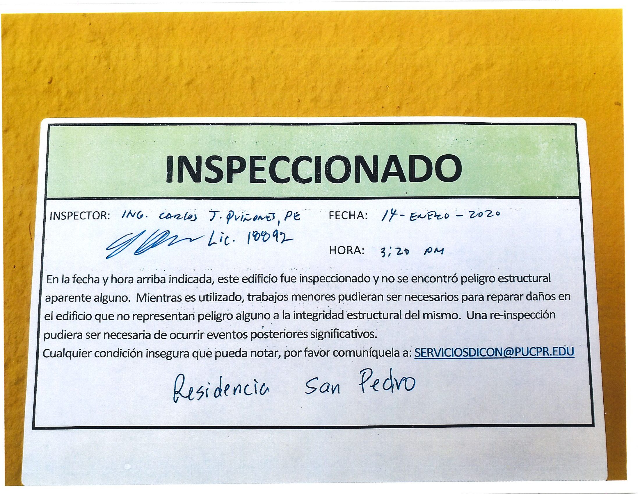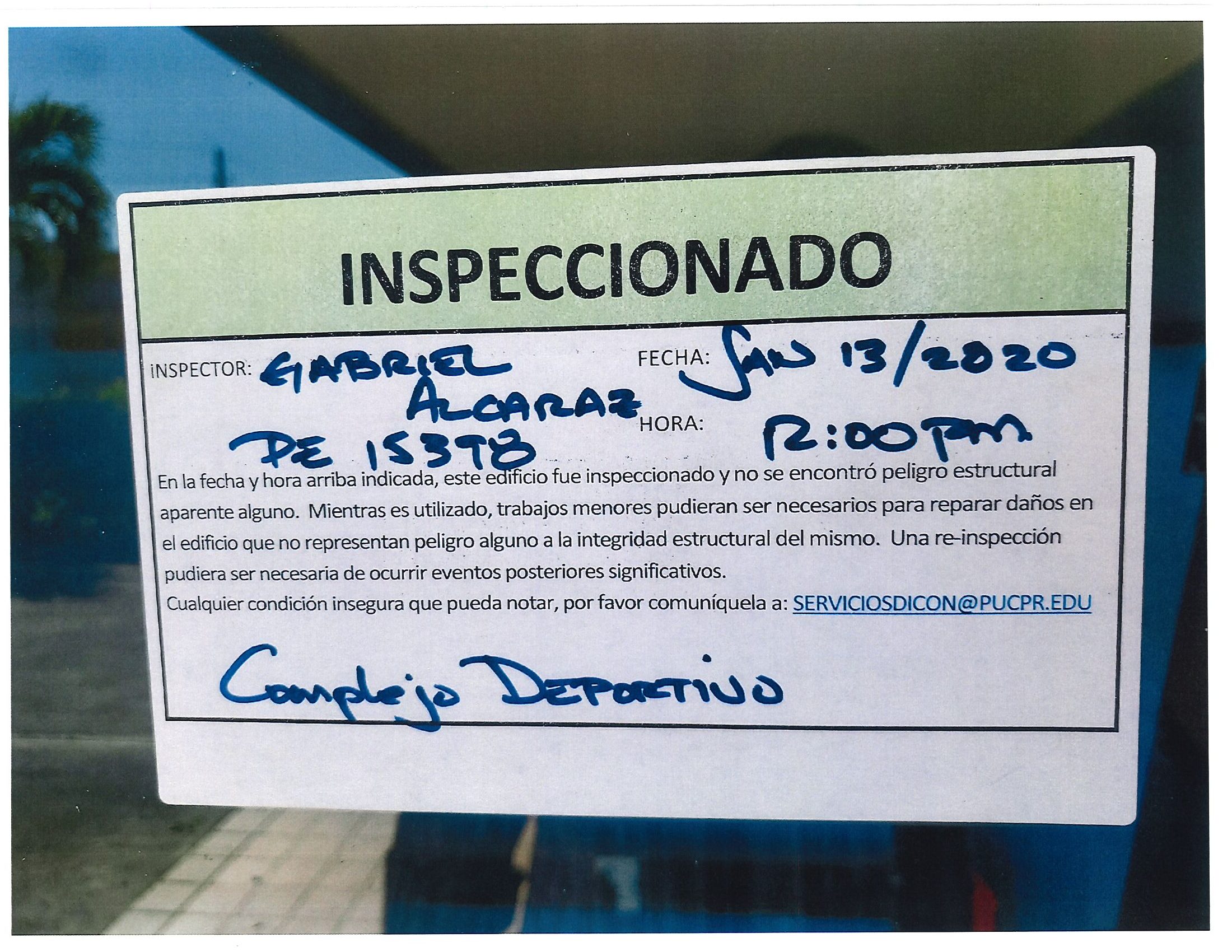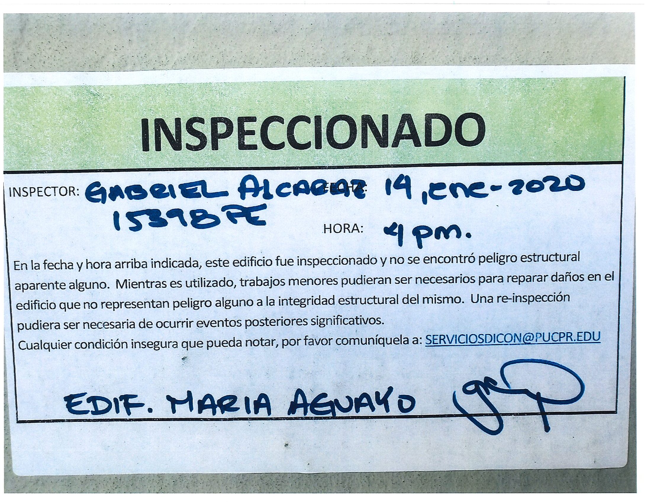 Actualización de inspección de los edificios By celimer_torres@pucpr.edu | January 20, 2020 Estos edificios están aptos para su uso. Posted in General ← Inicia proceso de matrícula en los tres recintosEn manos Pioneras la reconstrucción de la zona sur. →