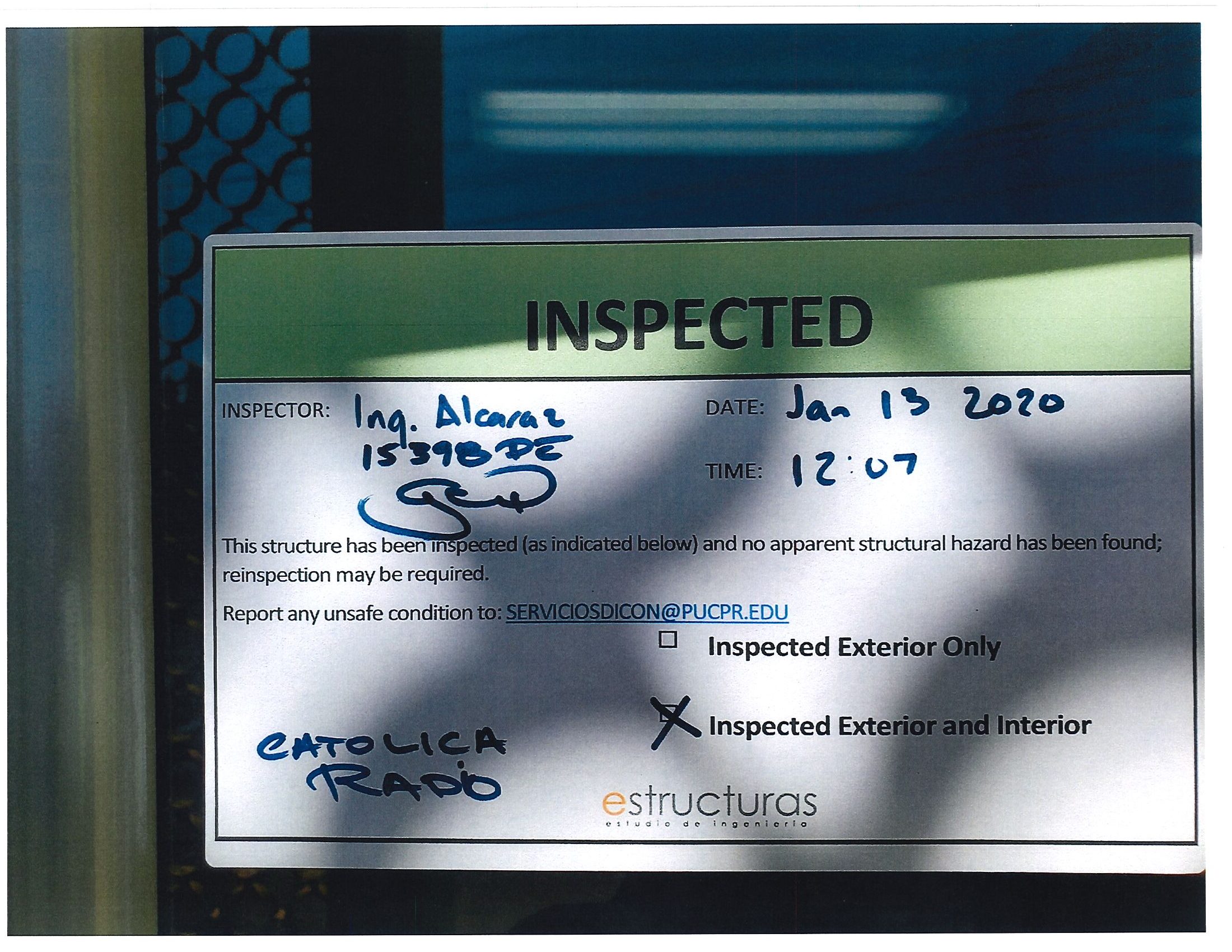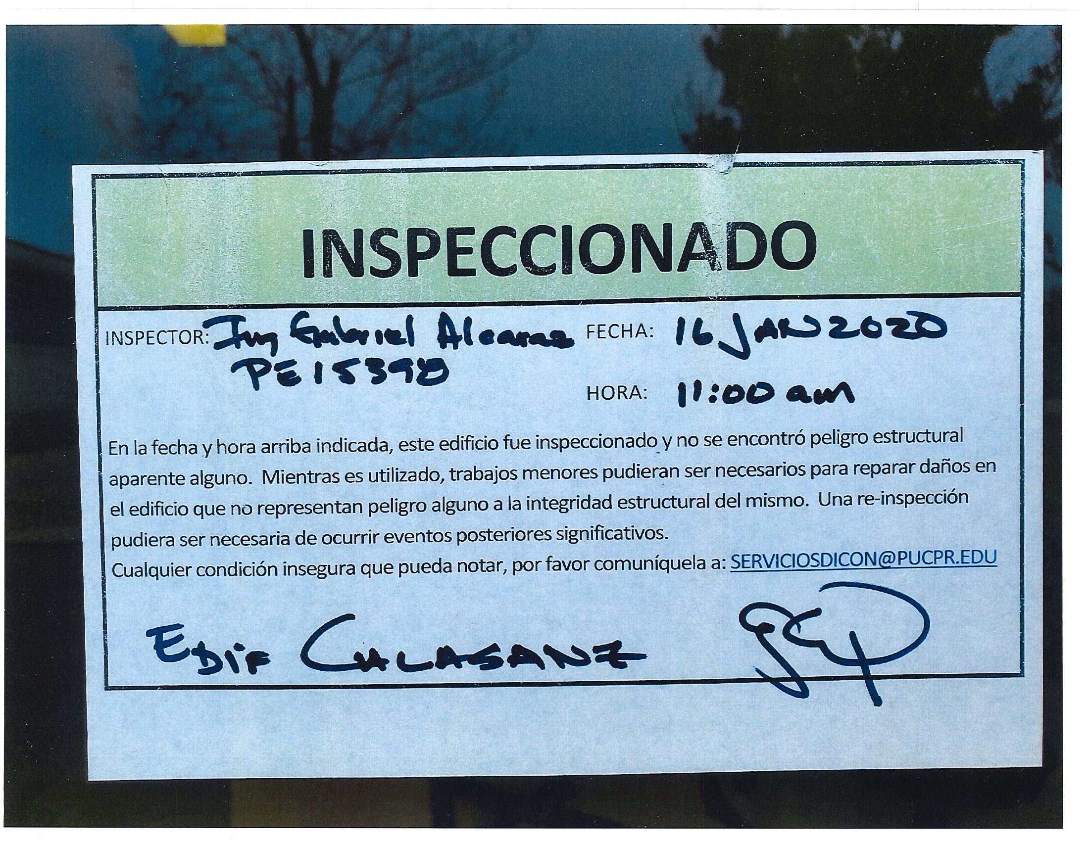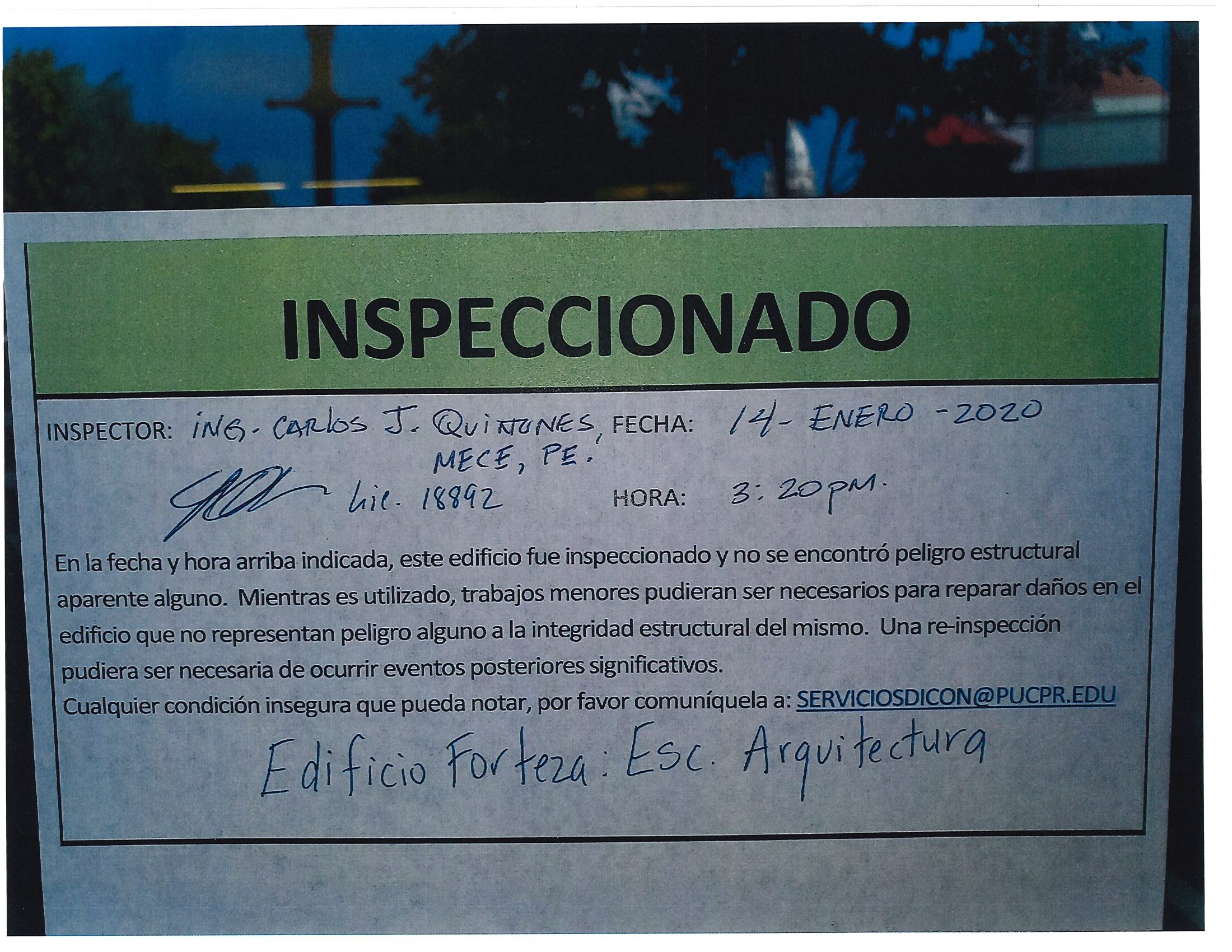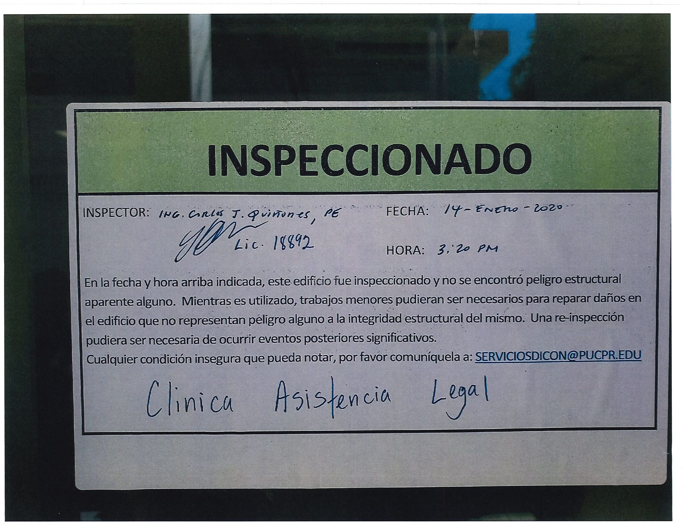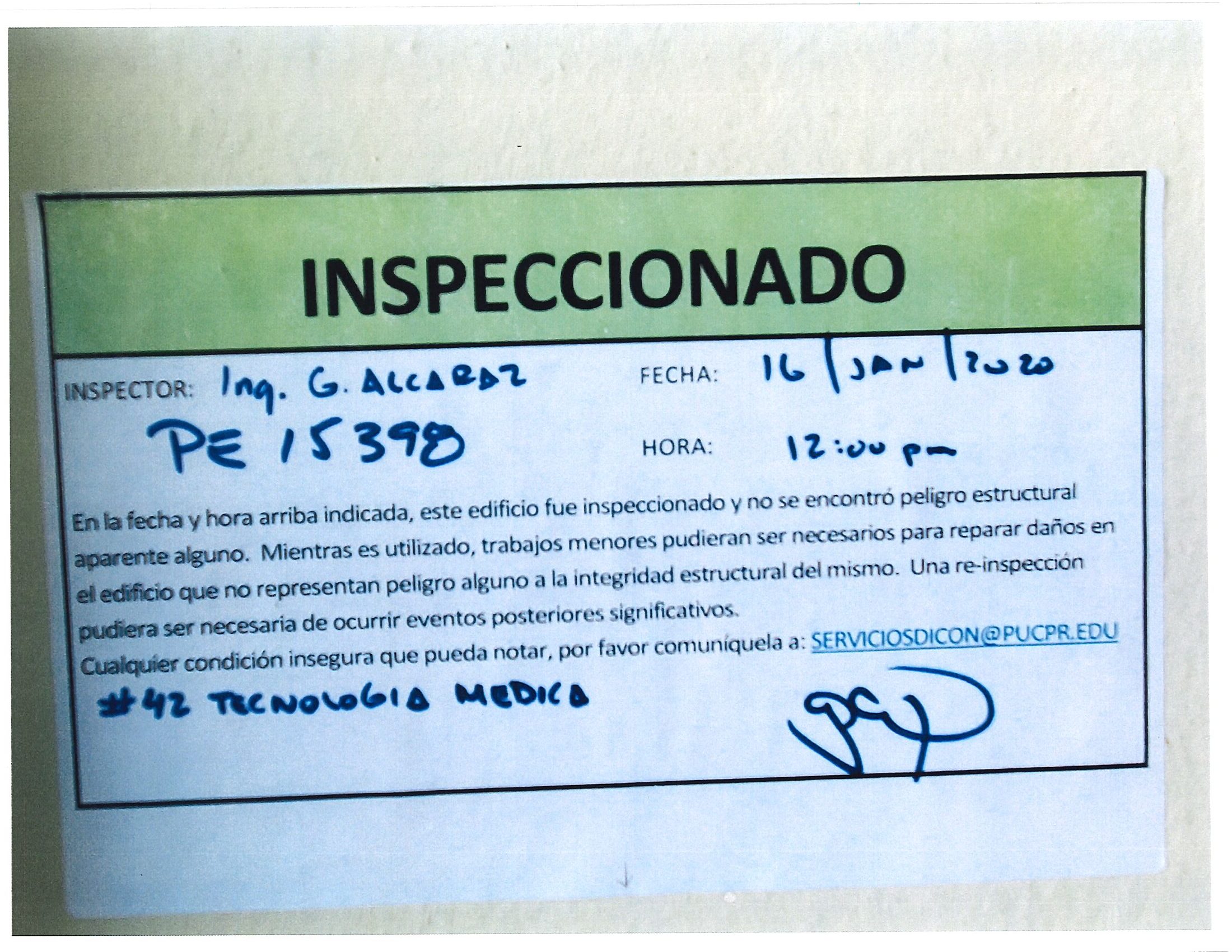 Actualización de inspección de los edificios By celimer_torres@pucpr.edu | January 20, 2020 Estos edificios están aptos para su uso. Posted in General ← Inicia proceso de matrícula en los tres recintosEn manos Pioneras la reconstrucción de la zona sur. →