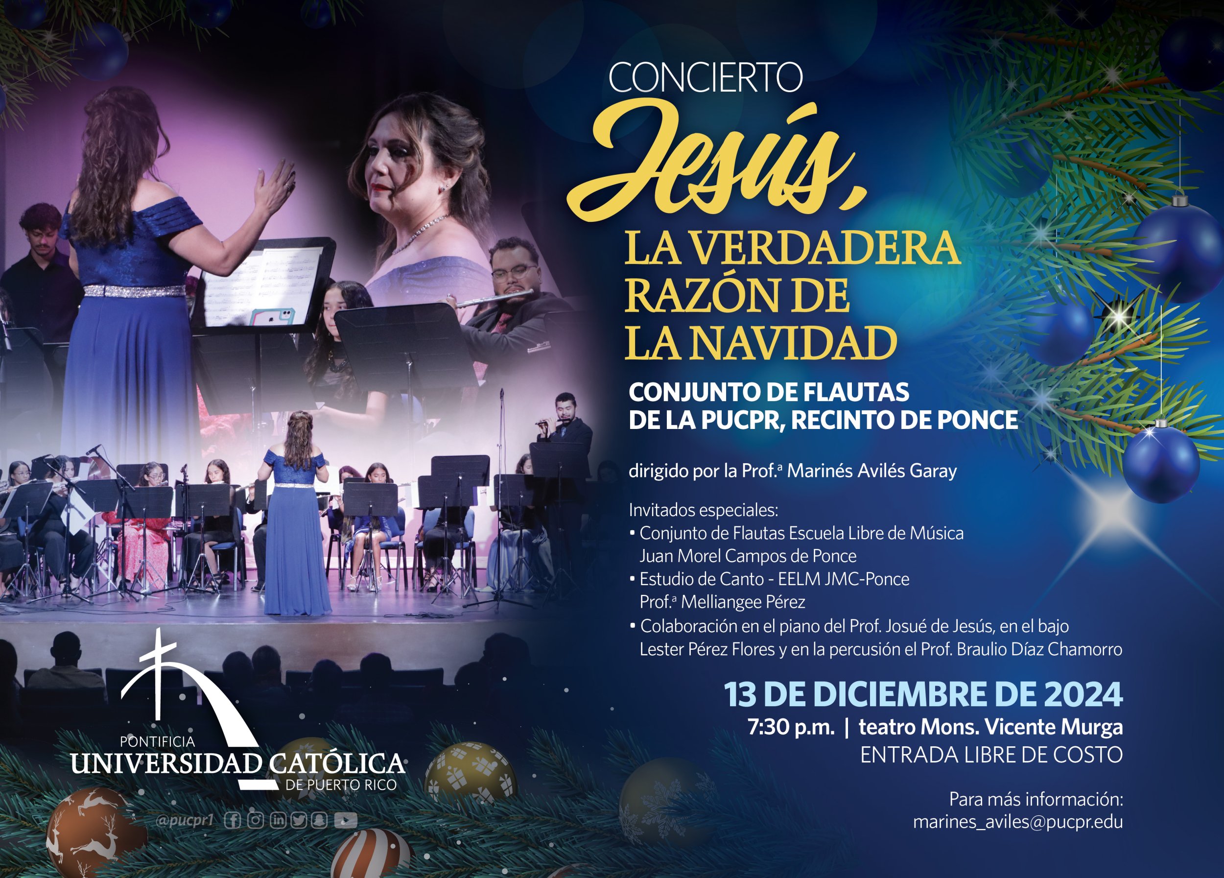 Jesús, la verdadera razón de la Navidad By celimer_torres@pucpr.edu | November 14, 2024 El Conjunto de Flautas presenta su concierto Posted in General ← Voces e historiasConcierto de Navidad 2024 →