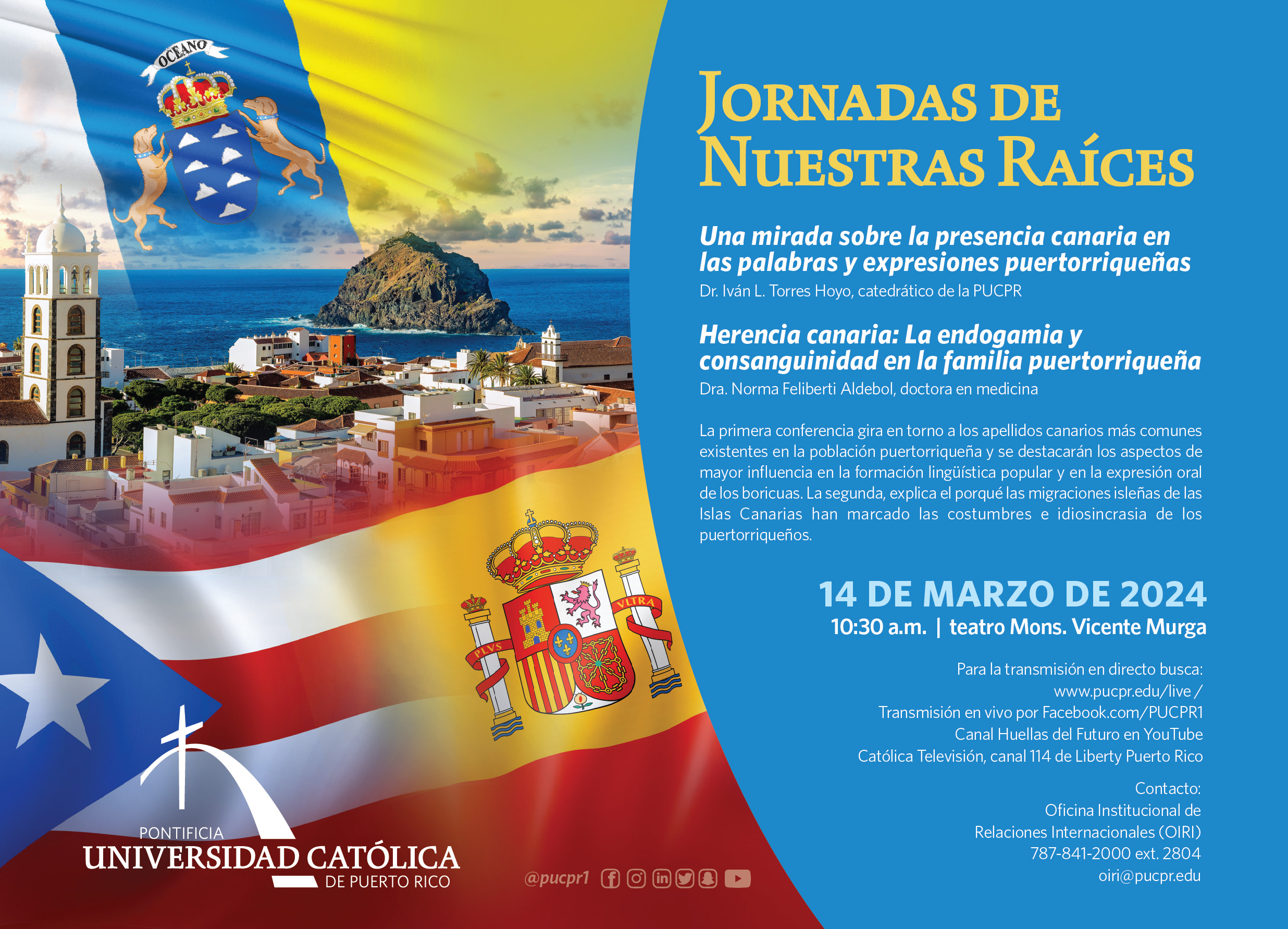 Jornada de nuestras raíces: Herencia canaria en Puerto Rico By celimer_torres@pucpr.edu | March 7, 2024 Los panelistas presentarán las huellas que han dejado Islas Canarias en el país. Posted in General ← La Católica se tiñe de rojoNuevas herramientas para los adultos mayores →