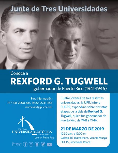 Los estudiantes de la Escuela de Derecho de la Pontificia Universidad Católica de Puerto Rico expondrán junto a estudiantes de la Universidad de Puerto Rico y de la Universidad Interamericana. El análisis será sobre la vida de Rexford Tugwell, gobernador de Puerto Rico de 1941 al 1946.
