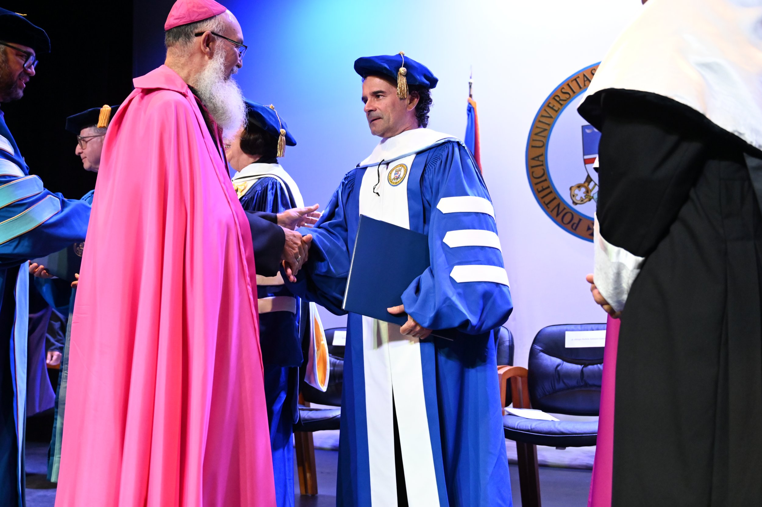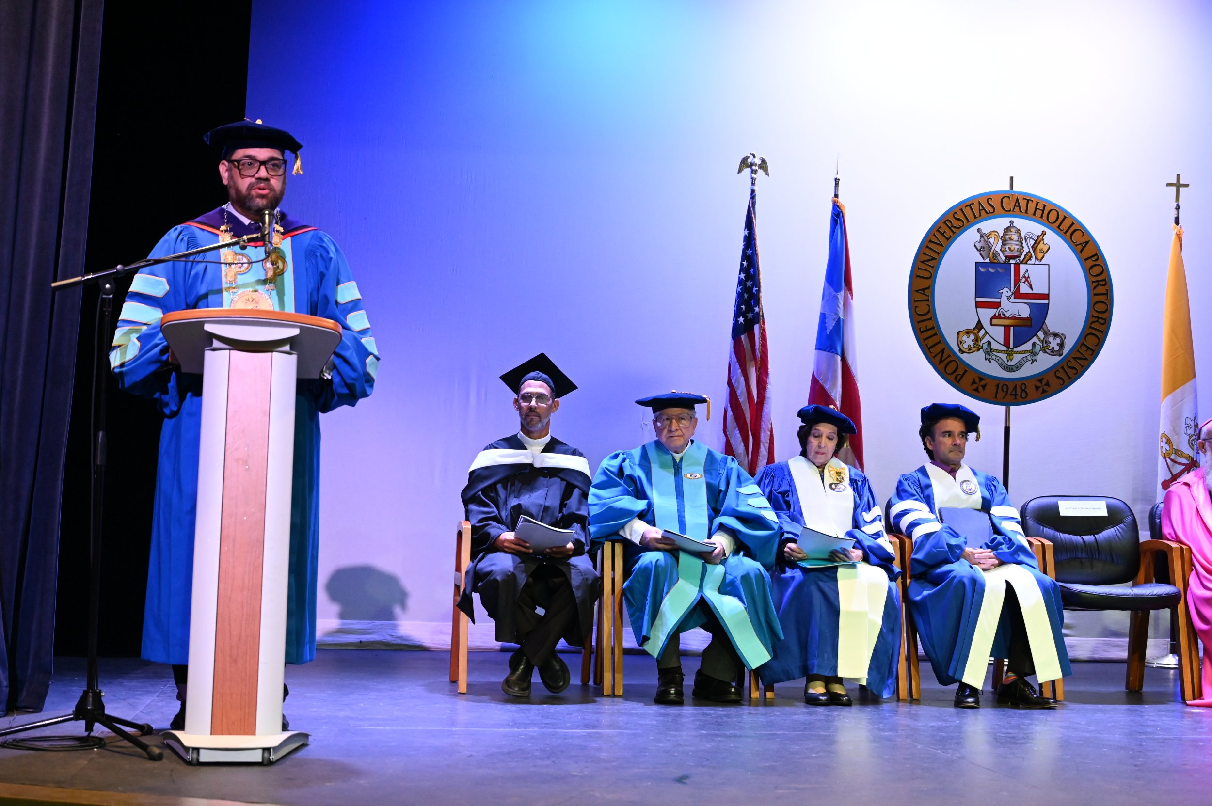 “La Pontificia Universidad Católica de Puerto Rico exalta reconoce y agradece la rica trayectoria de estos tres ilustres académicos, amantes de las artes, la educación y la cultura puertorriqueña.   Al otorgar estos grados honramos no solo a estas personas, si no que, en ellas, honramos los valores académicos, culturales, educativos y sociales que representan. Esos valores son en sí mismos los que definen nuestro propósito universitario y son signos de nuestra identidad.  En este momento en que es esencial reafirmar el valor de nuestras instituciones y de la educación universitaria integral, sociohumanística y centrada en la dignidad plena de la persona, este acto nos da la oportunidad de significarlo de manera concreta. Resaltamos el compromiso y la dedicación de Luce, de Emilio y de José con esta distinción de doctor honoris causa”, expresó el presidente, licenciado José Antonio Frontera Agenjo.