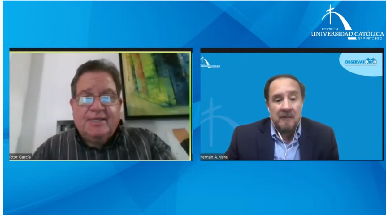 En el panel participaron el Dr. Víctor García San Inocencio, exlegislador y organizador de RESTI; y el Dr. Hernán Vera Rodríguez, director del Observatorio de Sociedad, Gobernanza y Políticas Públicas de la PUCPR.