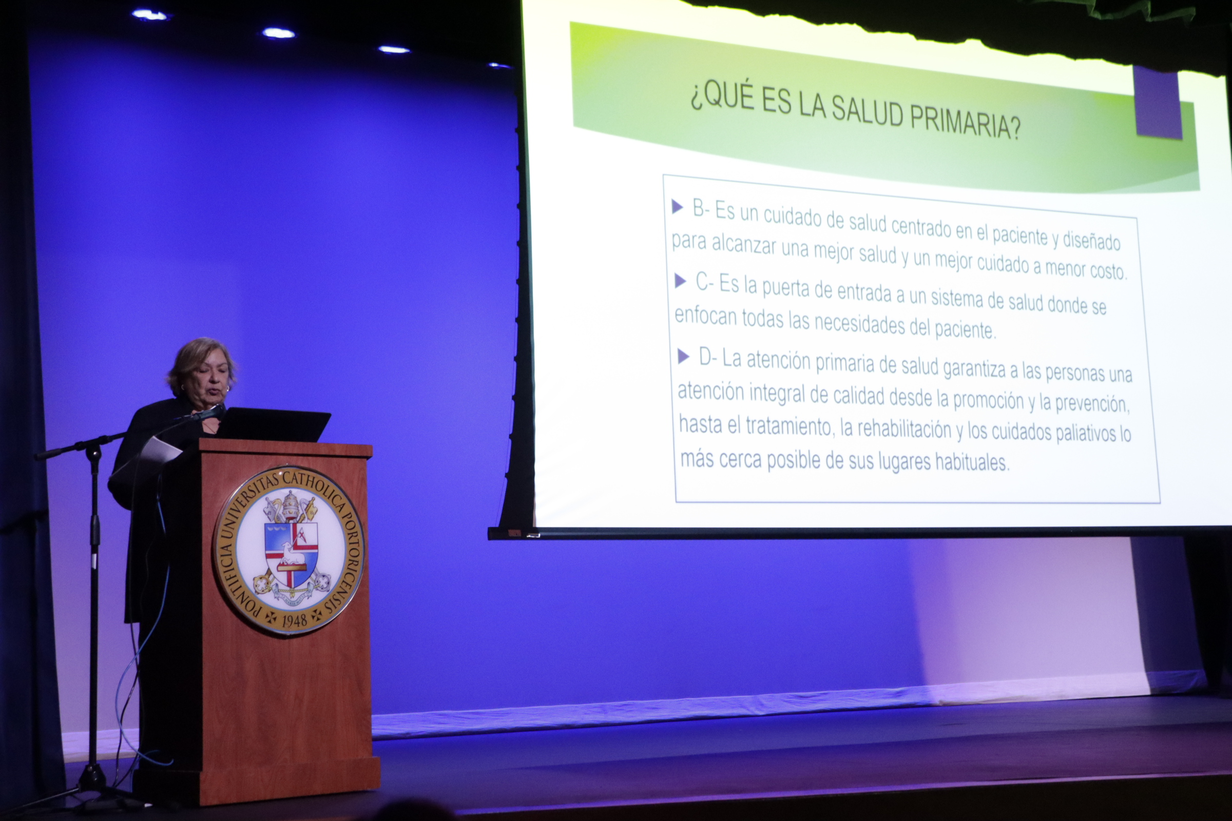 En su presentación la Dra. García enfatizó en la prevención y atención temprana como medida para evitar el progreso o aparición de condiciones de salud. “Para esta prevención es necesario ver los pacientes de manera holística, no solamente atender la salud física, sino también la salud mental y oral. Tenemos que ver la salud primaria como el muro de contención para otras enfermedades, para que no nos llegue la gente al hospital o para que la condición no se agrave o incluso no se desarrolle.  Para todas las condiciones hay puntos específicos de prevención. ¿Cuáles? No fumar, comer saludablemente, mantener un peso adecuado, hacer ejercicios, limitar el consumo de alcohol. Incluso, hasta para la prevención del Alzheimer, que pensamos que no puede prevenirse, hay cosas que si se pueden hacer para prevenirla. Por ejemplo, además de los que mencioné, haber cambios en el estilo de vida, hacer ejercicios mentales como leer y mantener una vida social activa. Estos elementos ayudan a retrasar o a evitar el desarrollo de enfermedades” explicó.