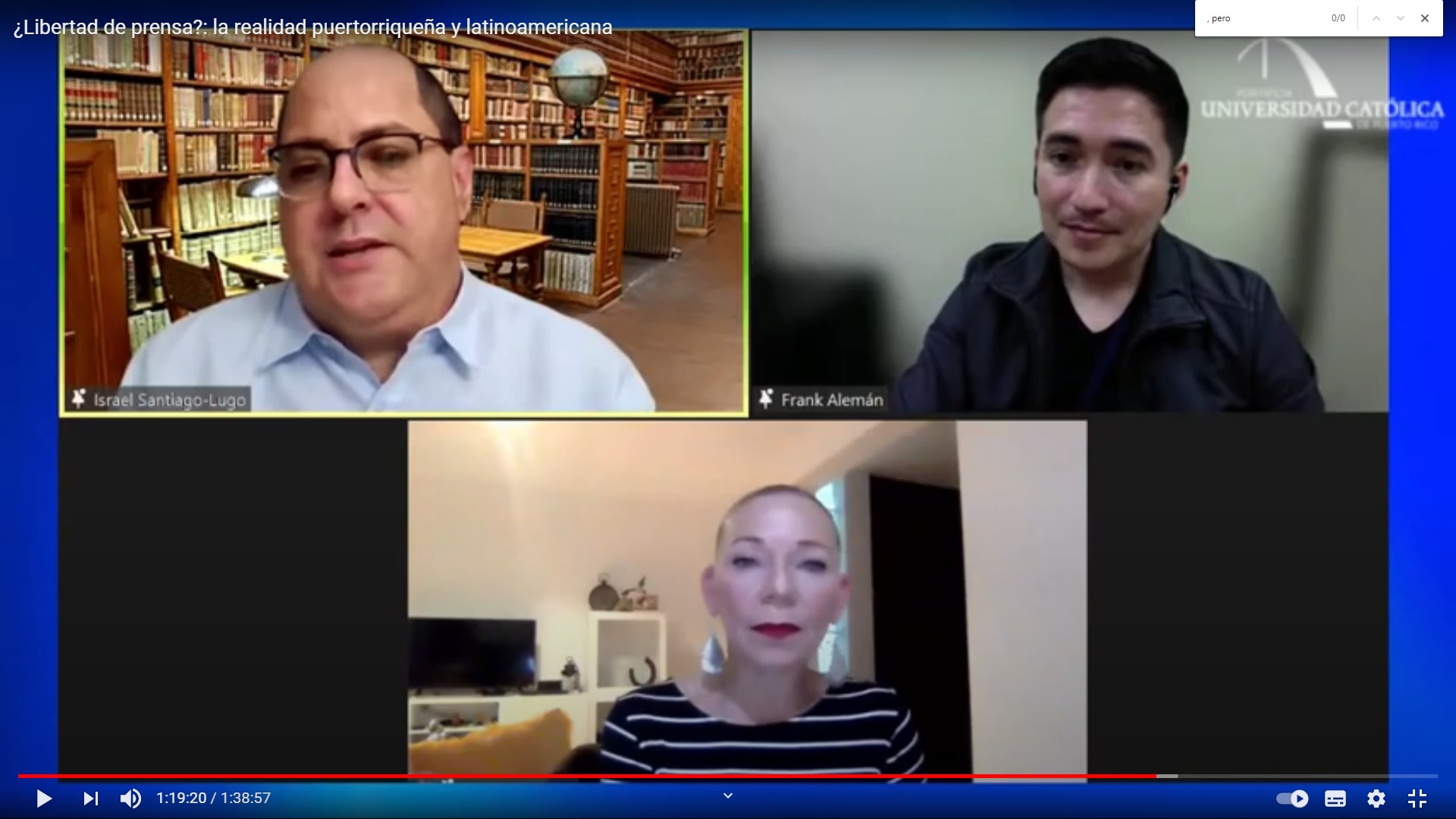 Ante esto, se celebró el conversatorio ¿Libertad de prensa?, la lucha en nuestro tiempo el 18 de marzo de 2021 por Zoom.  La presidenta de la Asociación de Periodistas de Puerto Rico (ASPPRO), Damaris Suárez, exploró el cuadro actual del periodismo en la Isla y habló sobre los retos de hoy que viven estos profesionales en Puerto Rico, mientras que el licenciado Frank Alemán, profesor de Periodismo en la Universidad Católica de El Salvador presentó una radiografía del ejercicio periodístico en ese país.