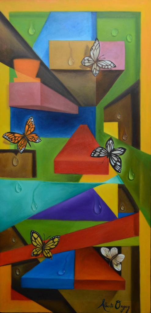 ” Balance” que es un óleo sobre lienzo y la cual describió como “ inspirada en ese balance del ambiente, balance que todos debemos tener en nuestro diario vivir y del cual debemos ser muy celosos”. El pintor representa el balance a través de mariposas y gotas de agua.