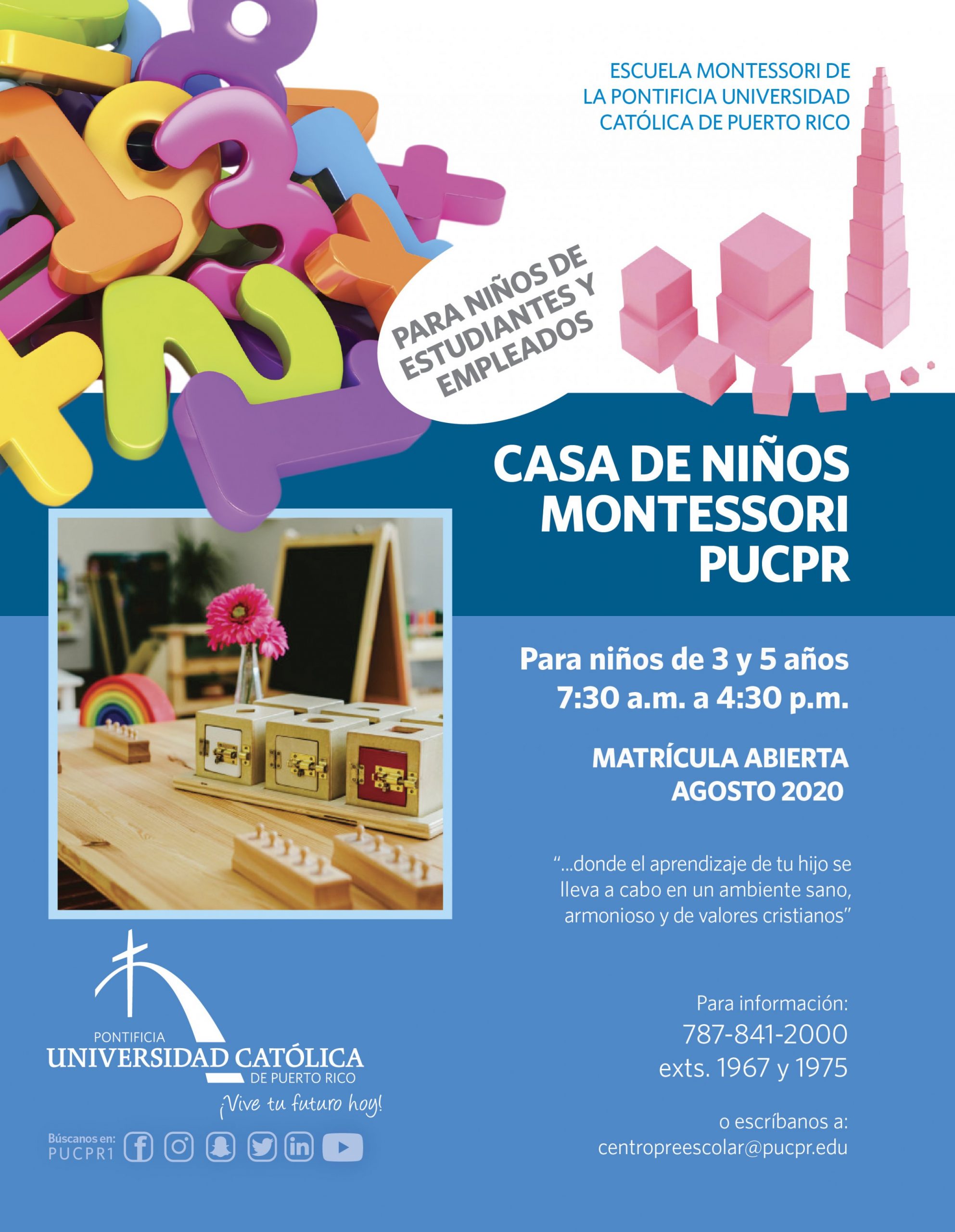 Matrícula abierta Escuelita Montessori de la PUCPR By celimer_torres@pucpr.edu | March 5, 2020 Pionero, recuerda que cuentas con un lugar excelente para la educación de tu niño. Posted in General ← Primera cumbre hacia el éxito académicoSimposio Entre Crisis: Vulnerabilidad ante Washington →