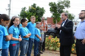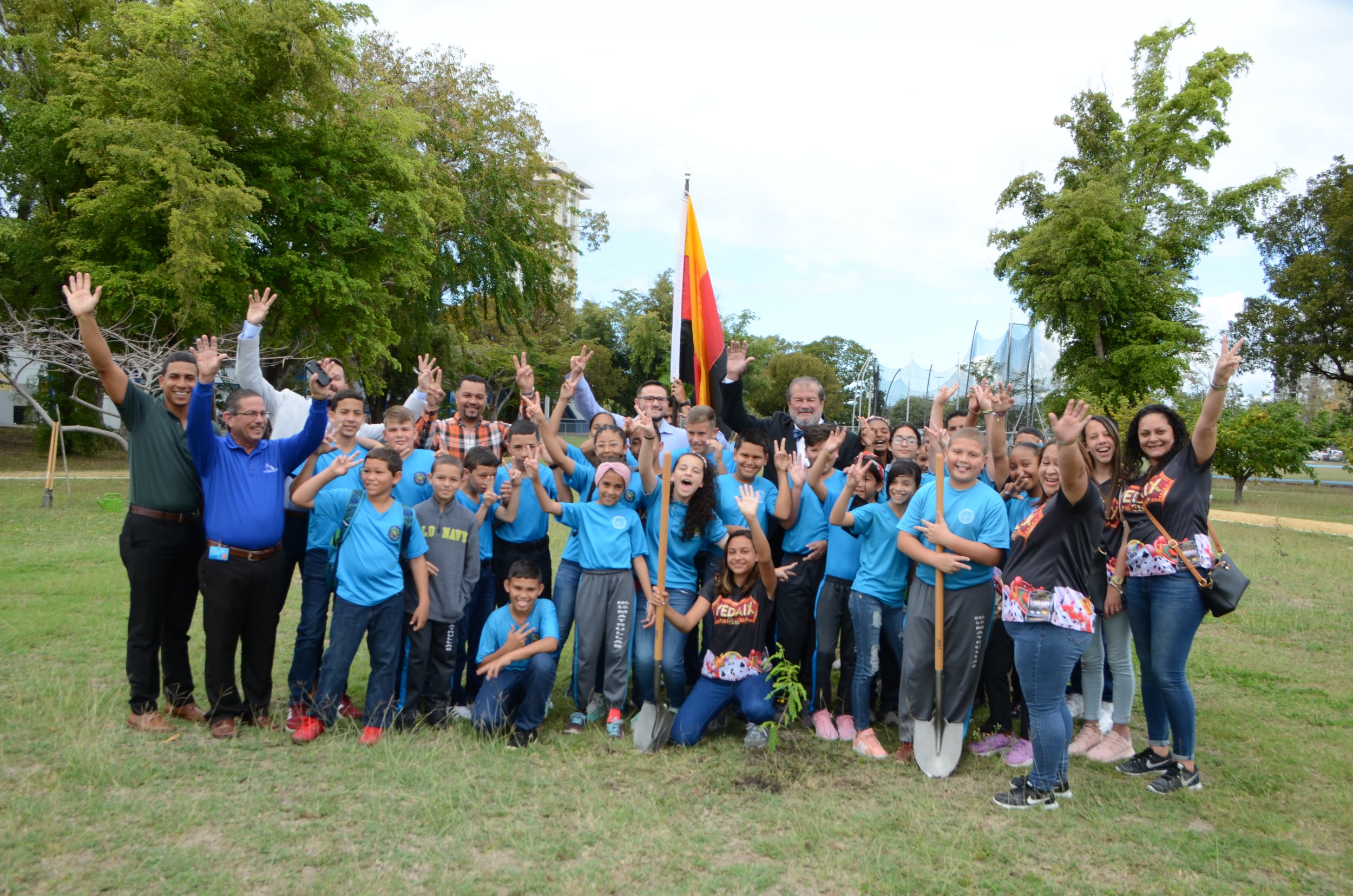 El equipo de reclutamiento recibió a la delegación en la entrada de La Católica y caminaron hasta el Bosque de las Naciones. Allí los recibió el presidente de la PUCPR, Dr. Jorge Iván Vélez Arocho para sembrar el árbol de la Escuela Matrullas. Fueron los chicos de la Escuela quienes, con la pala y regadera, sembraron su árbol y marcaron huella en La Católica