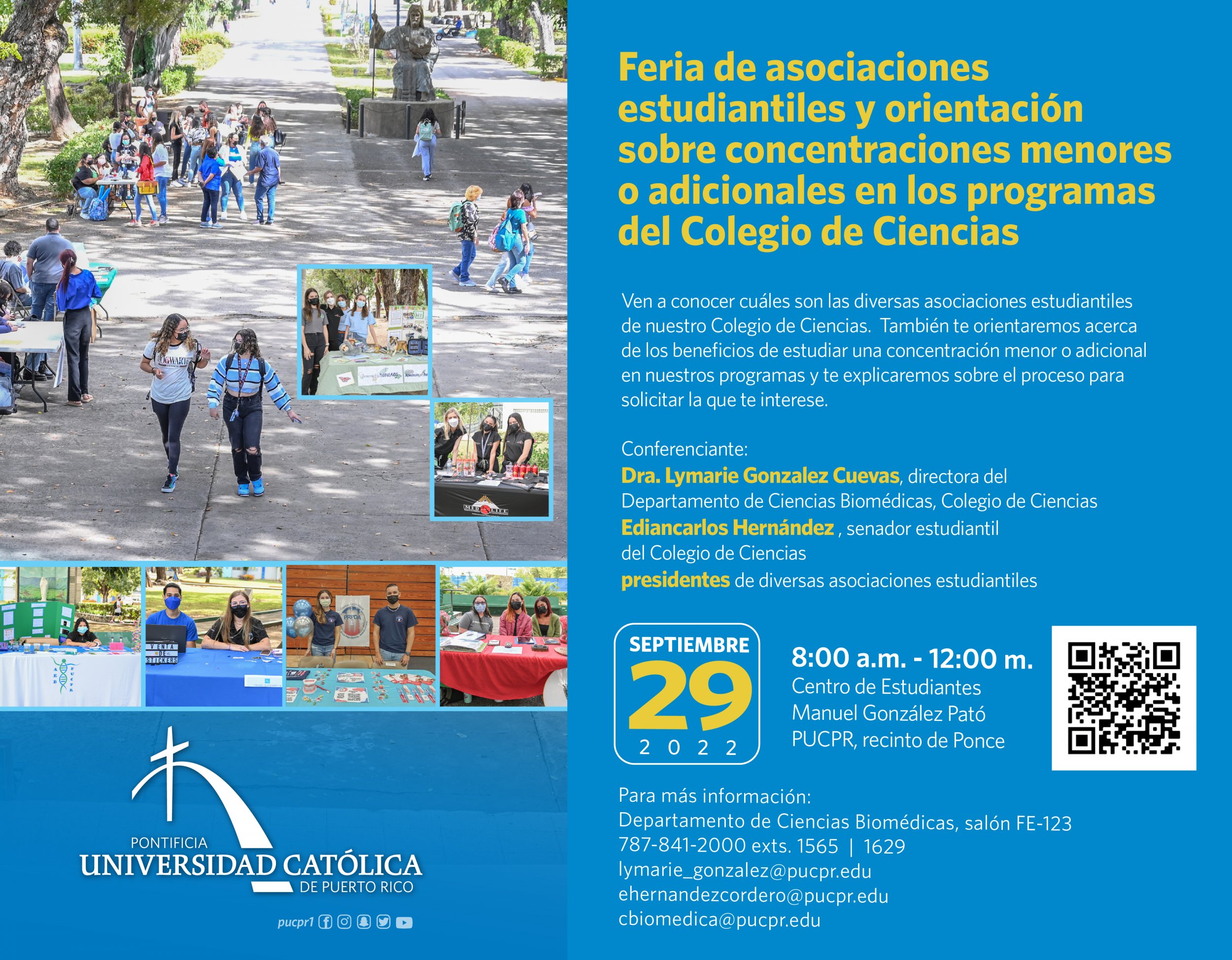 ¡Maximiza tu carrera en ciencias! By celimer_torres@pucpr.edu | September 15, 2022 Oriéntate sobre las asociaciones estudiantiles y las concentraciones adicionales que puedes realizar Posted in General ← Inicia la V Certificación de Responsabilidad Pública y GobernanzaLa Católica extiende receso de labores para mañana lunes →