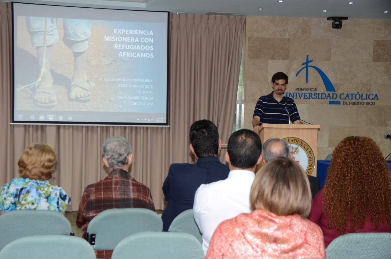 Durante su conferencia “Experiencia misionera con refugiados africanos” el pasado 25 de julio de 2015, Romaguera compartió sus testimonios con los inmigrantes provenientes de diversos países de África y del Medio Oriente. “Enfrentan un viaje muy peligroso, cruzando el desierto del Sahara. Una vez que llegan a Libia, intentan atraversar el Mar Mediterráneo en botes precarios para poder llegar a Italia y Europa, donde esperan encontrar una vida mejor”, detalló.