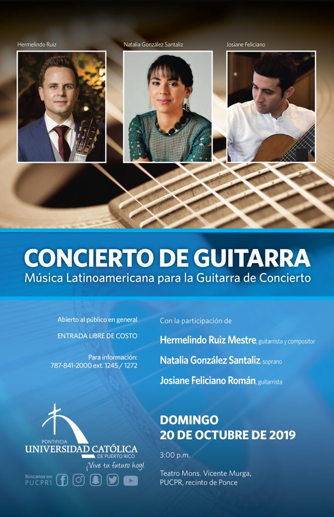 Música latinoamericana para la guitarra By celimer_torres@pucpr.edu | September 26, 2019 Guitarra y voz se unen para deleite de la comunidad. Posted in General ← “La Católica refuerza medidas de seguridad en su recinto de Ponce”¡Vamos para Perú! →