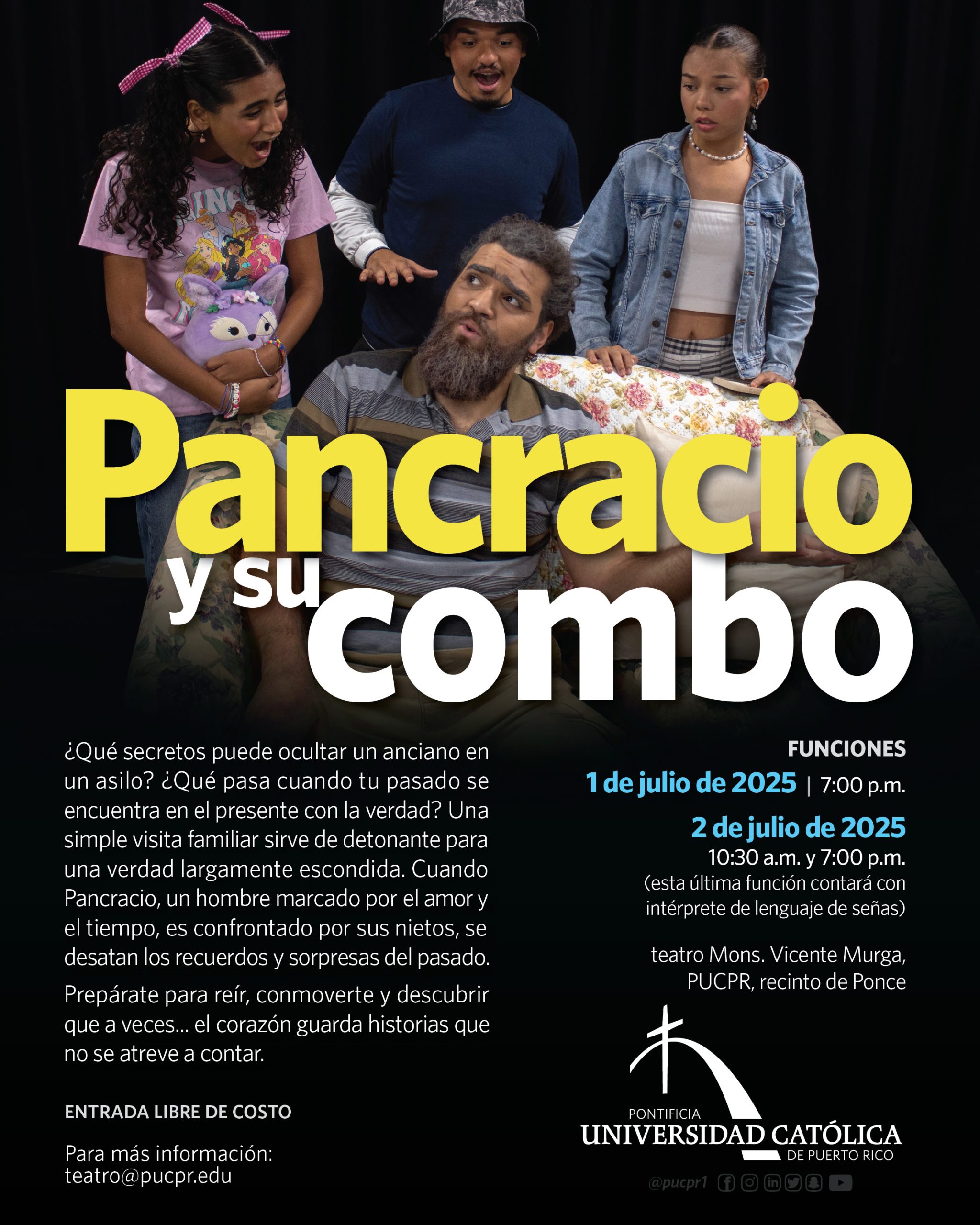 Pancracio y su combo By celimer_torres@pucpr.edu | June 27, 2025 Prepárate para reír, conmoverte y descubrir que a veces el corazón guarda historias que no se atreve a contar. Posted in General ← Pioneros participan en XXI Asamblea General de la ODUCALAna Frank: terror y esperanza →
