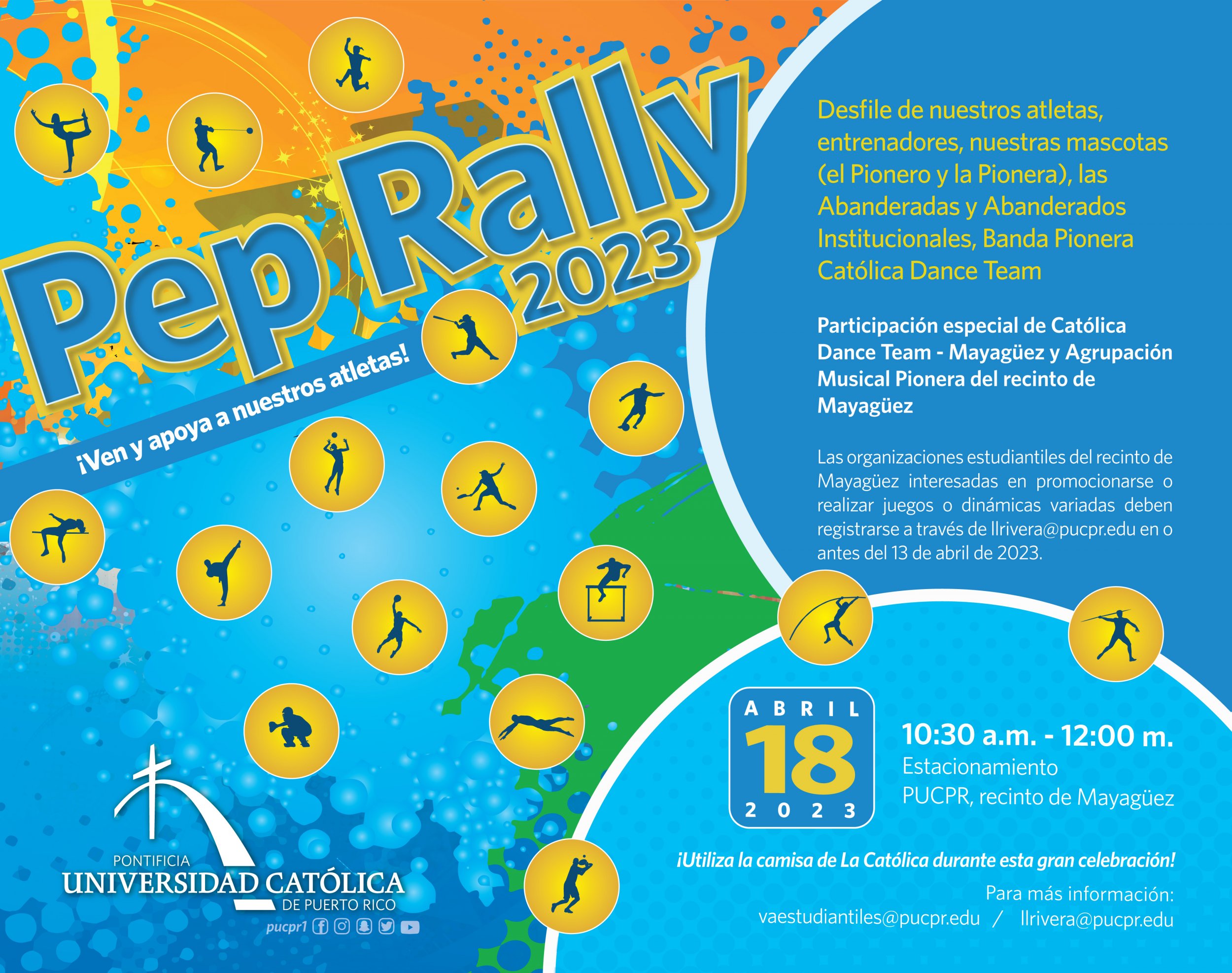 Pep Rally 2023 By celimer_torres@pucpr.edu | March 16, 2023 ¡Ven y apoya a nuestros atletas! Posted in General ← ¿Tienes más de 40 años y estás retirado o jubilado?“Con María, caminemos juntos” →
