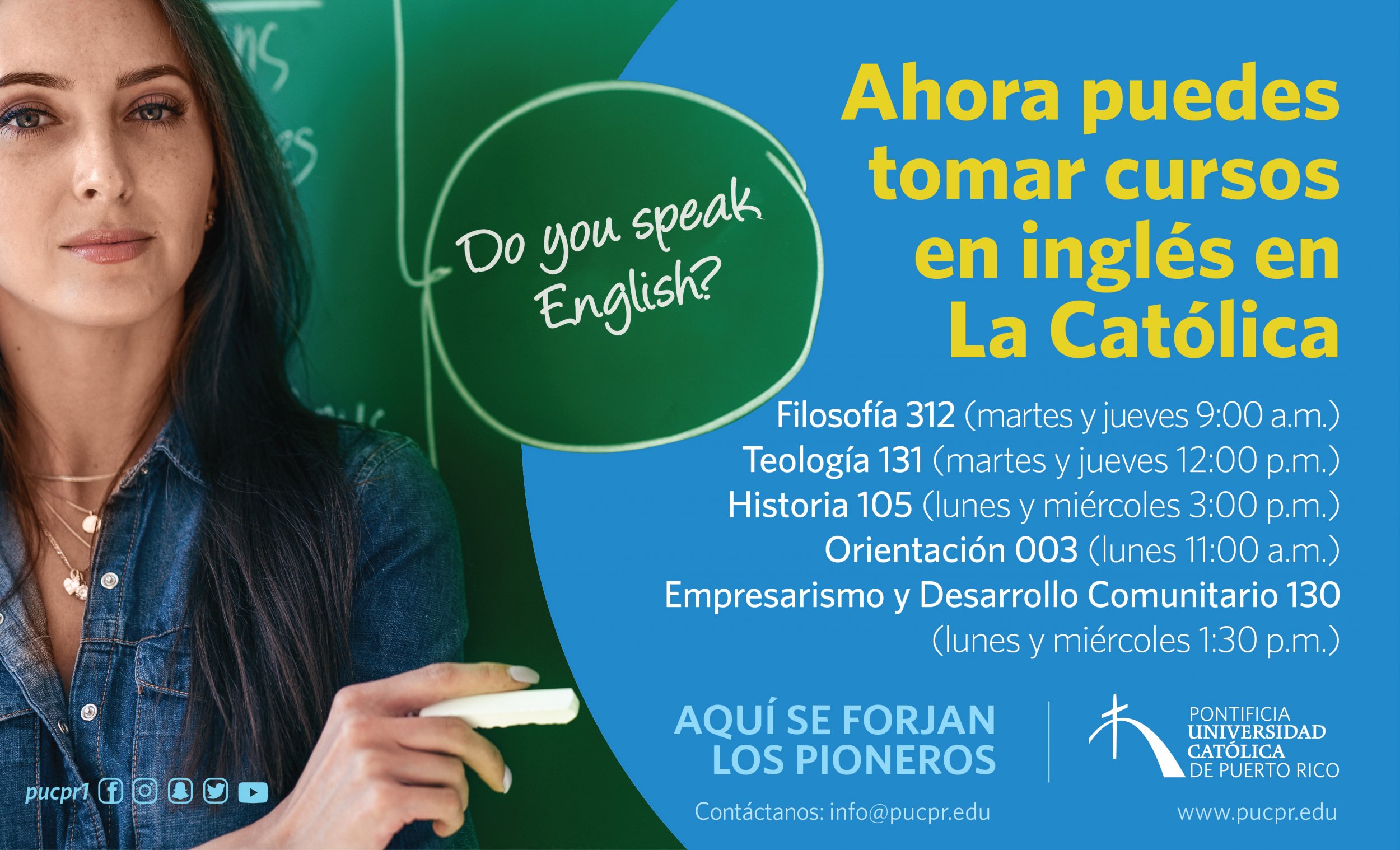 ¡Perfecciona el inglés! By celimer_torres@pucpr.edu | January 8, 2021 Matricúlate en estos cursos que son totalmente en inglés. Posted in General ← Investigaciones académicas con soluciones al paísCientíficos Pioneros se distinguen en México →