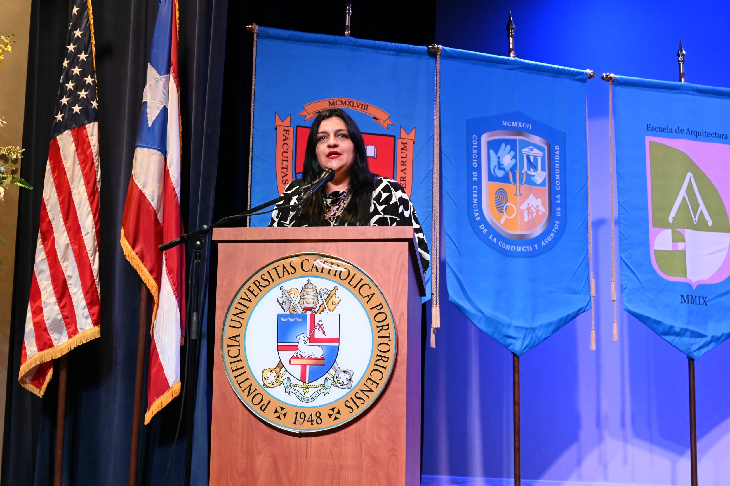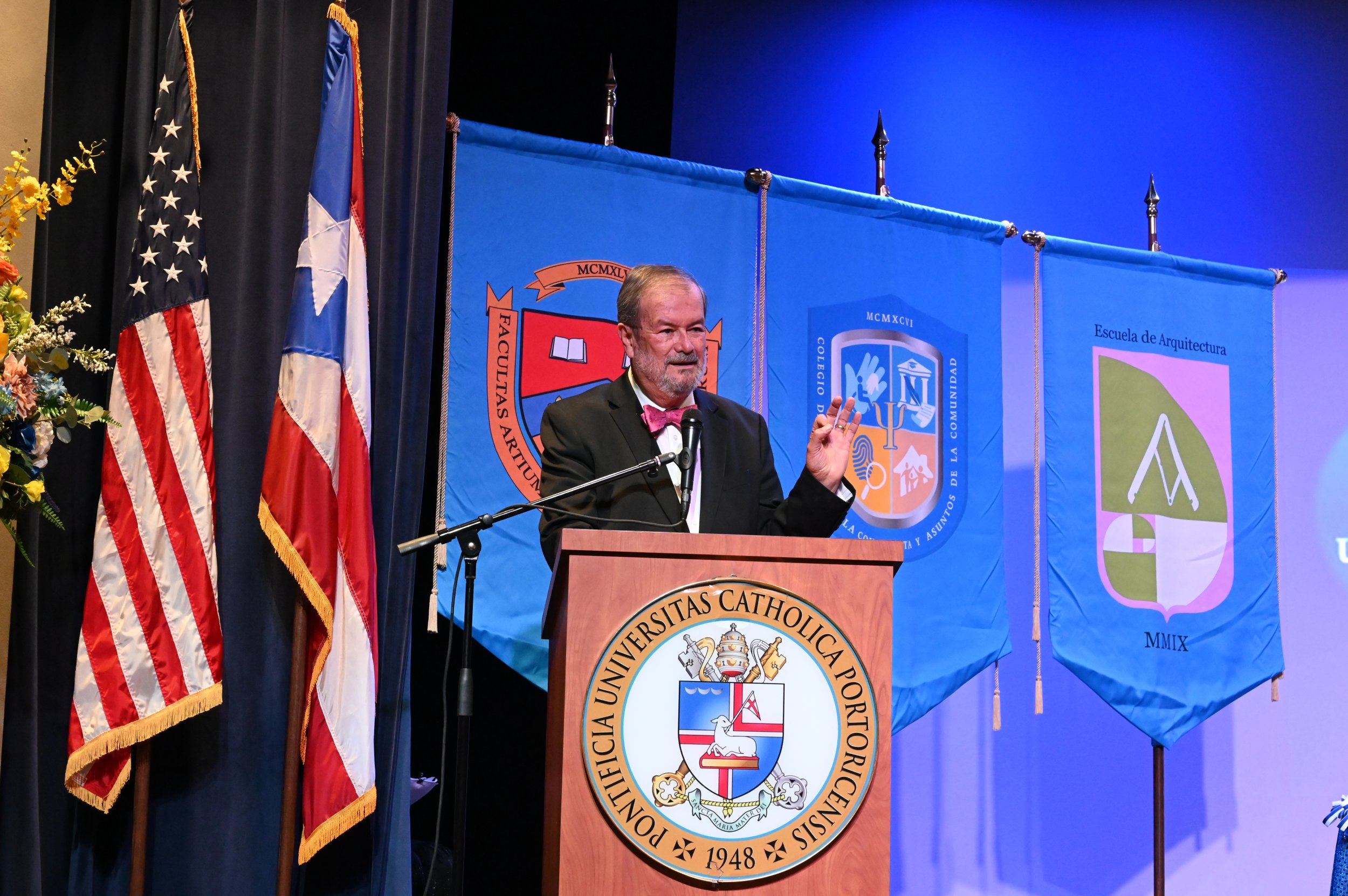 El presidente de la Pontificia Universidad Católica de Puerto Rico expresó “Nuestra Universidad, se ha distinguido por tener estudiantes de alto nivel académico a lo largo de los años, así que esta ceremonia es una actividad de reconocimiento en la que escogemos los 100 estudiantes con los mejores promedios. Y hacemos lo mismo en Arecibo y en Mayagüez. Esta actividad es un gran reconocimiento a la familia, a los padres que acompañan de una manera excepcional a los estudiantes en sus anhelos, en sus aspiraciones, en sus sacrificios, así que es una actividad de reconocimiento a los estudiantes por el excelente trabajo que hacen, pero en gran medida, es un reconocimiento y un agradecimiento institucional a sus padres”.