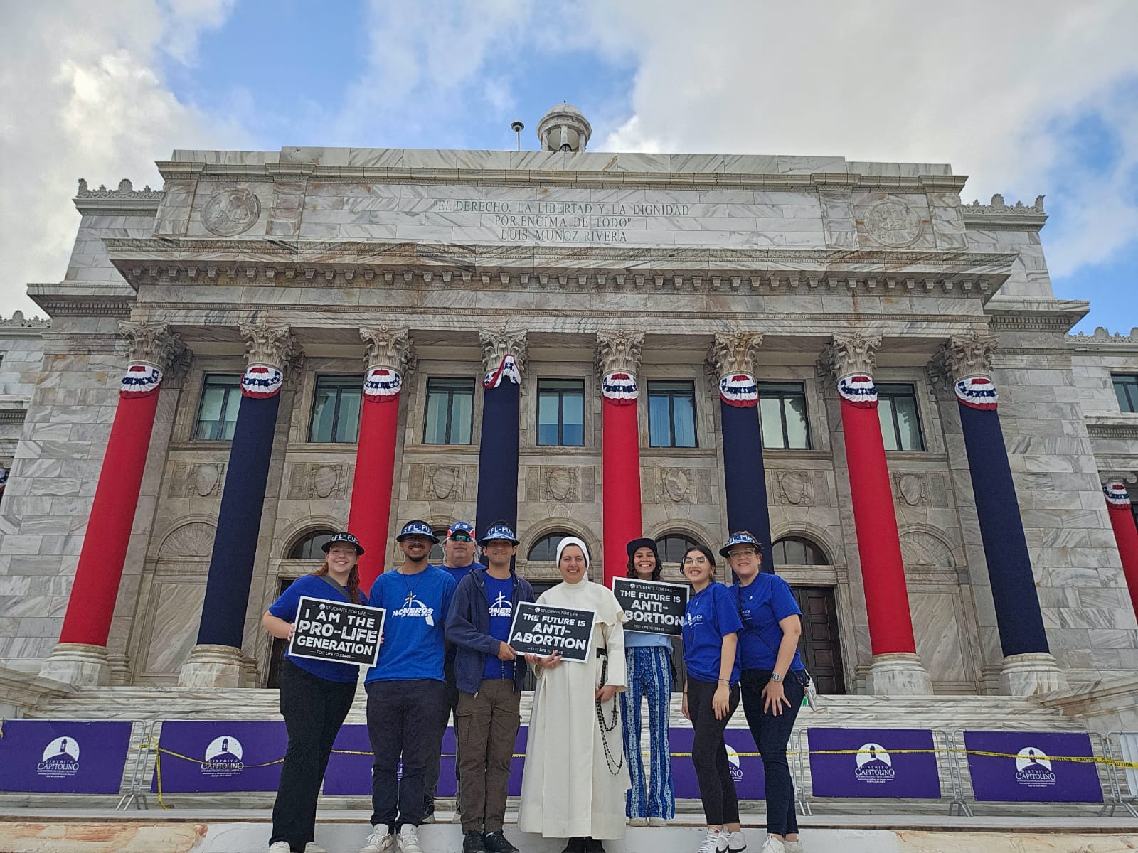 Un grupo de estudiantes de la Pontificia Universidad Católica de Puerto Rico, miembros de la Asociación Students for Life y la Pastoral Juvenil Universitaria, participaron activamente en una marcha pacífica en pro de la vida en los predios del Capitolio de Puerto Rico. Este evento reunió a diversas entidades comprometidas con la defensa de la vida en todas sus etapas, desde la concepción hasta la vejez, enviando un poderoso mensaje de amor y respeto por la dignidad humana. La actividad tuvo como objetivo principal crear conciencia sobre la importancia de proteger y valorar la vida en un contexto educativo y pacifista. Los estudiantes estuvieron acompañados por sor Faustina, coordinadora de la Pastoral y la Dra. Lymarie González, directora del Departamento de Ciencias Biomédicas y comentora de Student for Life.