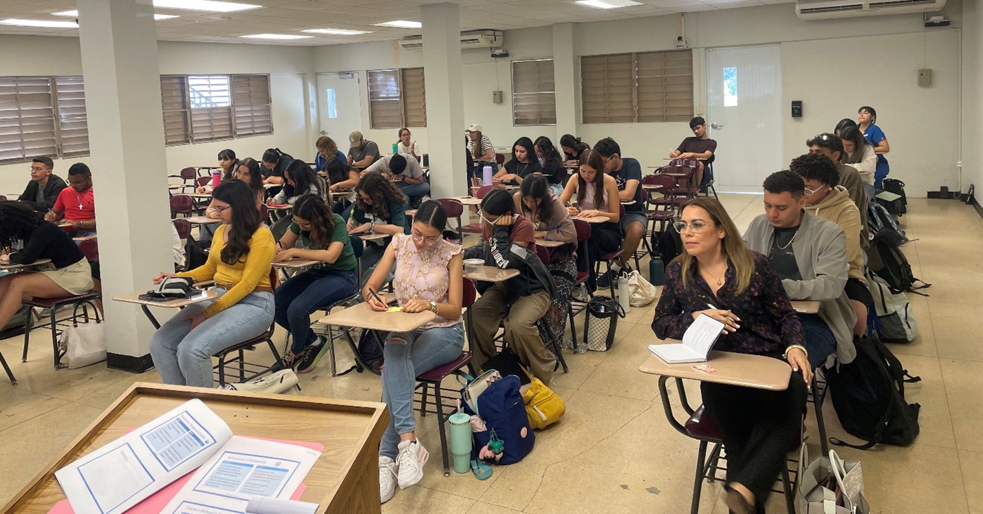 Estudiantes de distintos colegios y especialidades participaron recientemente de un emotivo conversatorio sobre las experiencias e impacto de la violencia. El Dr. Arvin Báez, director del Centro de Consejería Profesional y catedrático del departamento de psicología fungió como recurso de este conversatorio en que se promovió un espacio para la reflexión y el diálogo con los estudiantes.