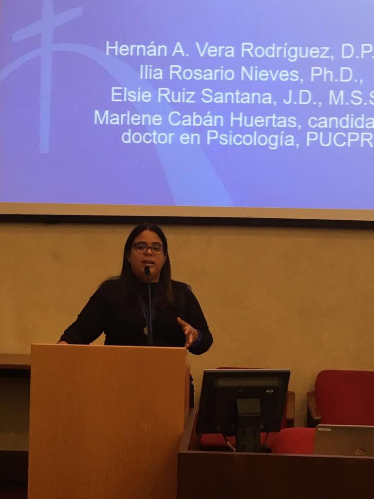 El trabajo investigativo presentado por Marlene Cabán contó con la participación del Dr. Hernán A. Vera, decano del Colegio de Estudios Graduados en Ciencias de la Conducta y Asuntos de la Comunidad; de la Dra. Ilia Rosario, directora de la Escuela Graduada de Psicología; y de la Profa. Elsie Ruiz, directora de la Escuela Graduada de Ciencias Sociales.
