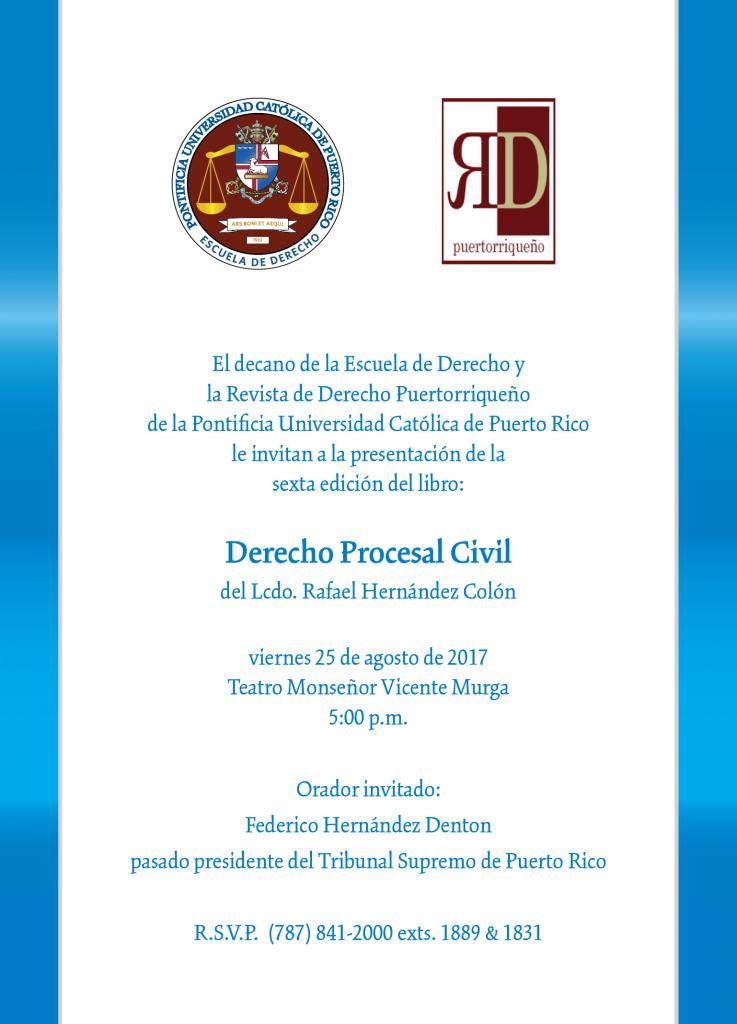 Presentación libro Derecho Procesal Civil By celimer_torres@pucpr.edu | August 17, 2017 Posted in General ← Audiciones Católica Dance TeamAudiciones Católica Dance Team →