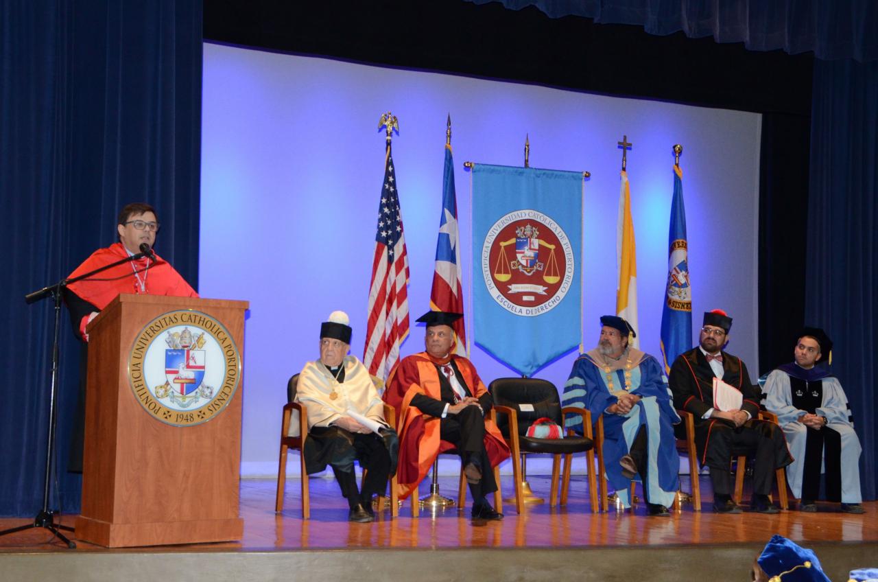 El académico fungió como orador invitado por la Escuela de Derecho de la Pontificia Universidad Católica de Puerto Rico.