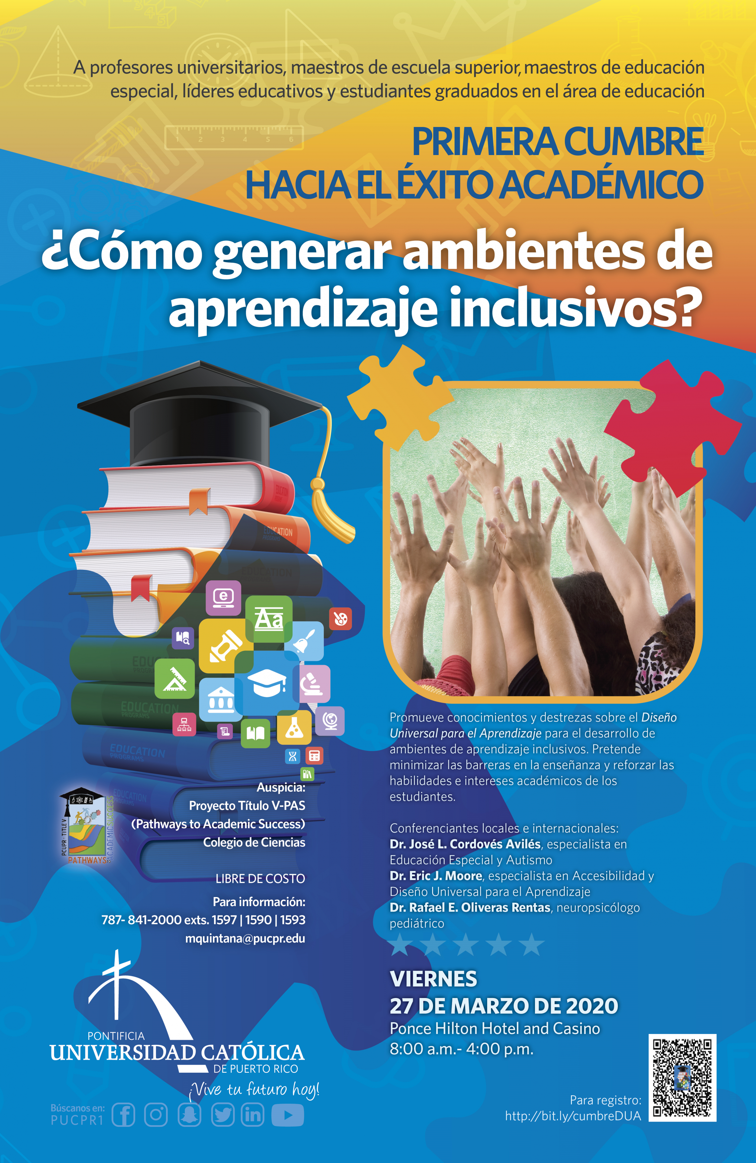 Primera cumbre hacia el éxito académico By celimer_torres@pucpr.edu | March 5, 2020 Dirigido a generar ambientes de aprendizaje inclusivos. Posted in General ← La Iglesia ante el tribunalMatrícula abierta Escuelita Montessori de la PUCPR →