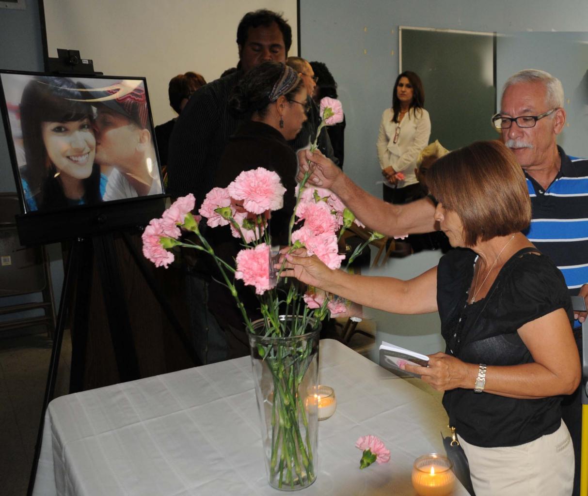 Compañeros de estudio, familiares y docentes de la PUCPR ofrecieron flores ante la foto de Mariangely.
