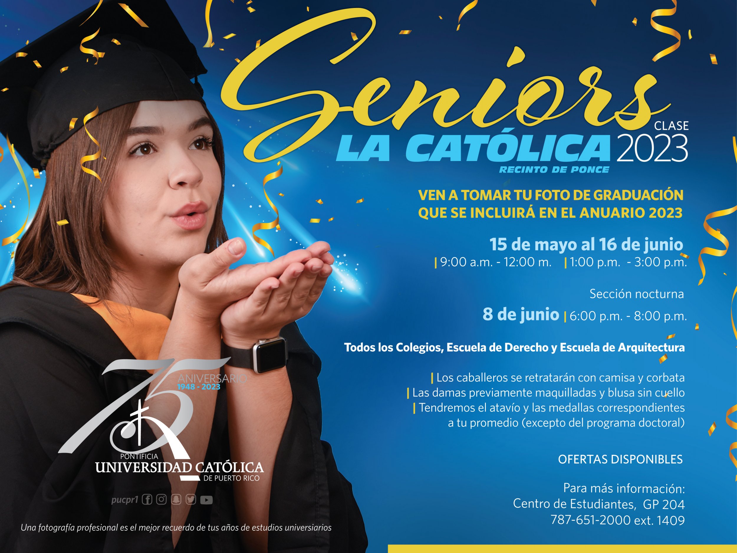 ¡Queremos tu foto! By celimer_torres@pucpr.edu | May 18, 2023 Ya puedes tomarte tu foto de graduación. Posted in General ← Al otro lado la remodelación del edificio ValdésFestival Casals de Puerto Rico →