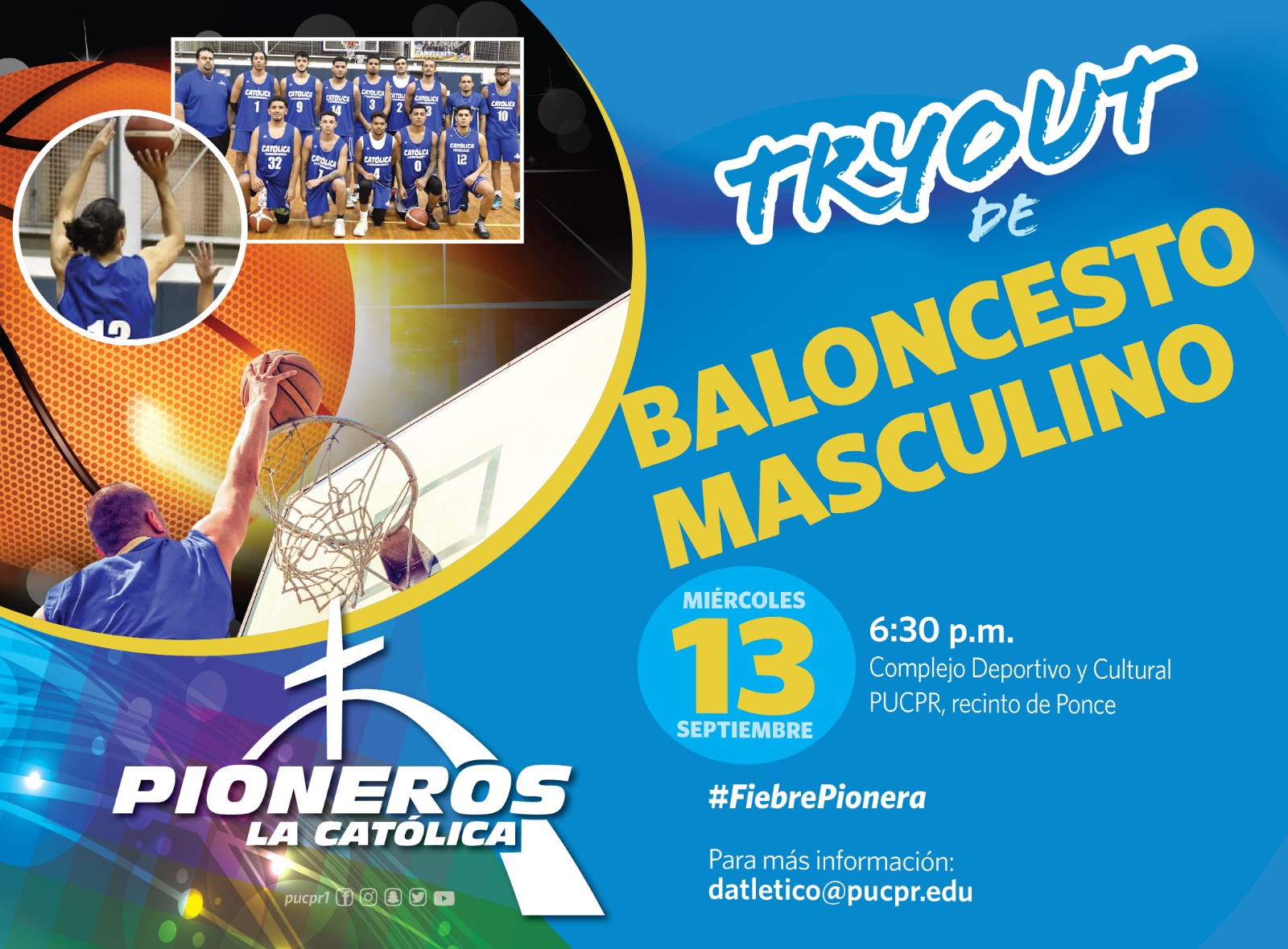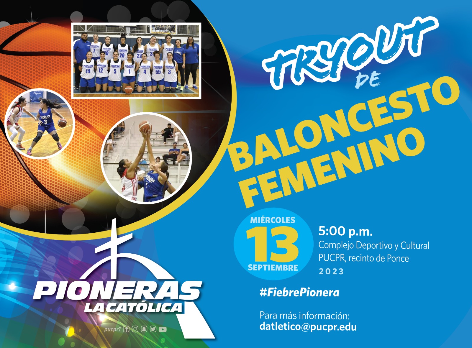 ¿Quieres ser parte de la #FiebrePionera ? By celimer_torres@pucpr.edu | August 30, 2023 ¡Buscamos nuevos miembros para los equipos masculino y femenino de baloncesto! Posted in General ← Fondos disponibles para estudiantes de los tres recintos de La Católica con emergencias financierasOrganizando la esperanza a través de una educación comunitaria, intercultural y transformadora →