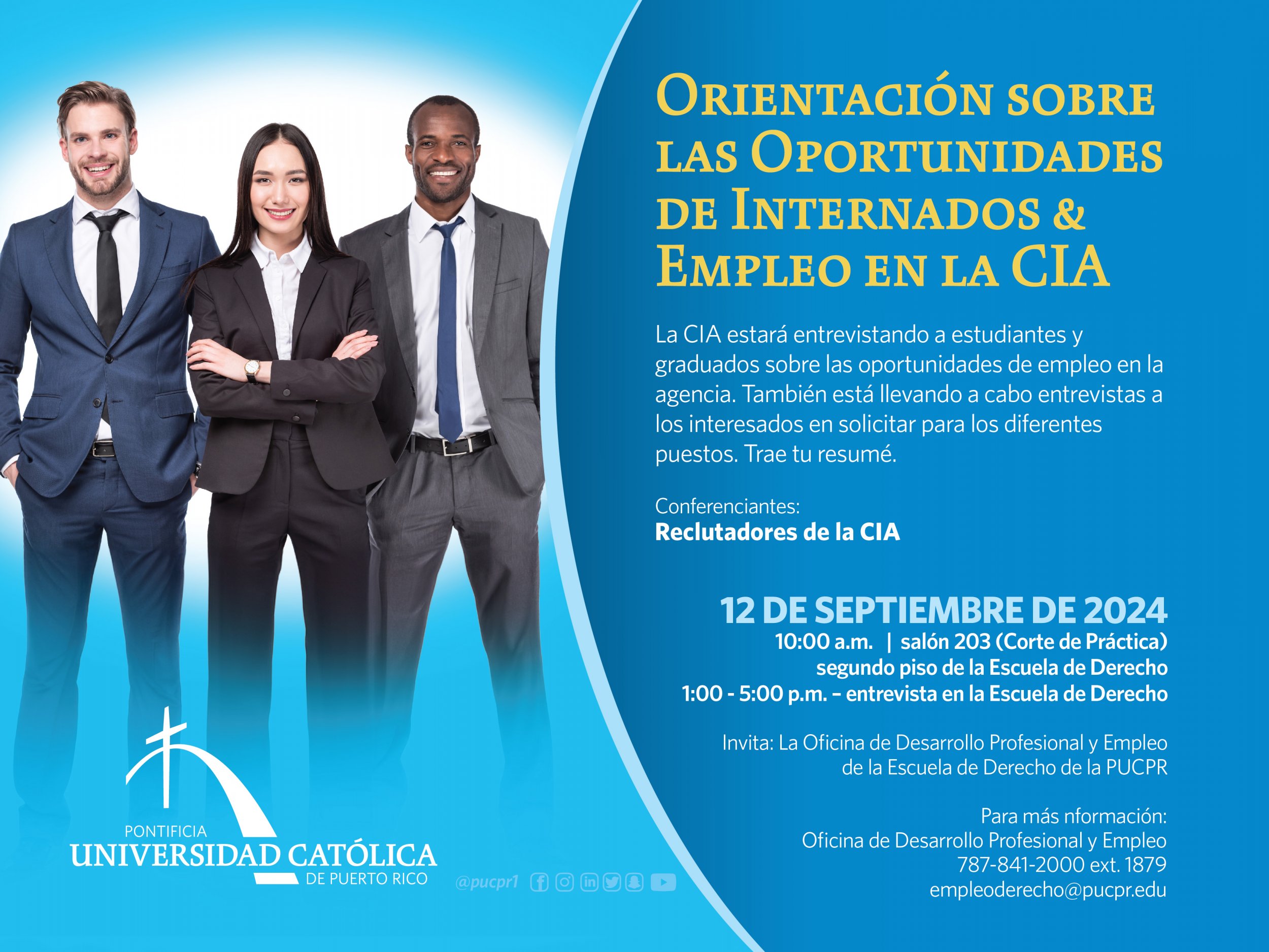 ¡Trae tu resumé y participa de la orientación sobre oportunidades de internados y empleos en la agencia!
