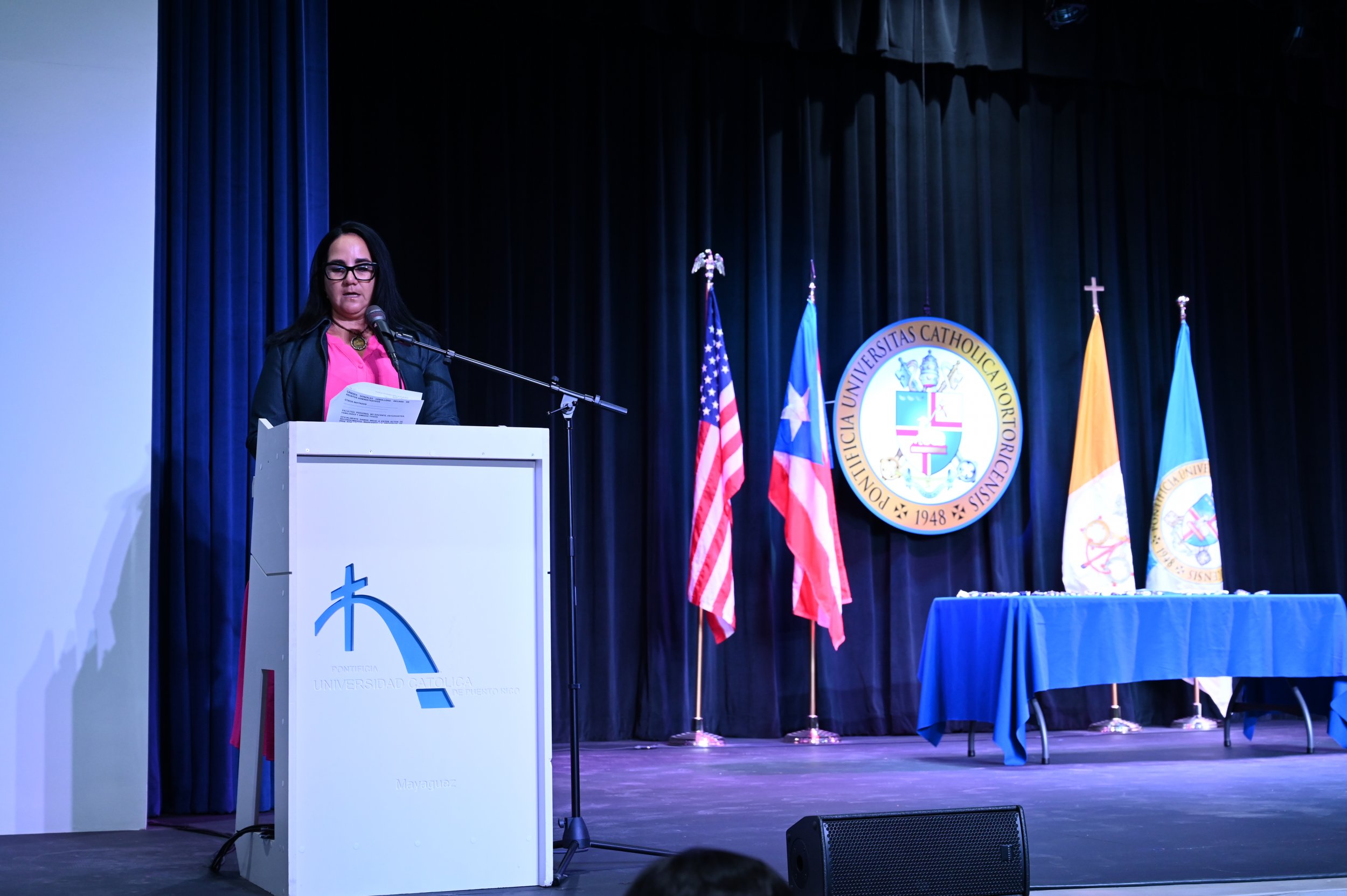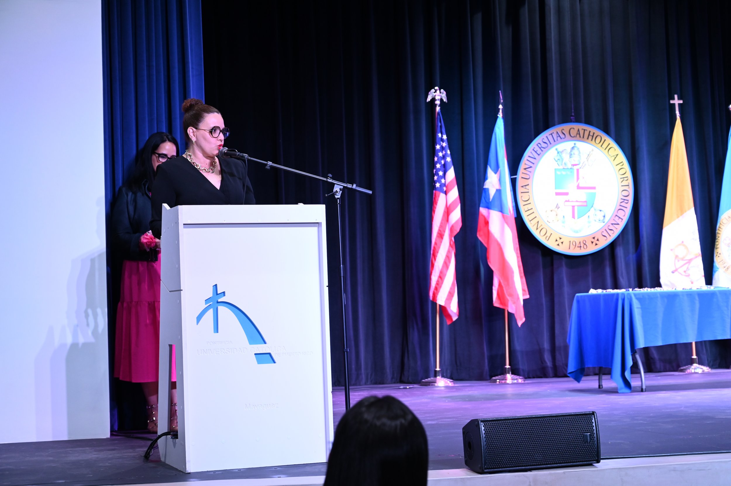 La ceremonia contó con la participación de la agrupación Pionera del recinto de Mayagüez de la PUCPR, que dirige la estudiante Angeishka P. Negron Pérez, quienes deleitaron a los presentes con un repertorio de música selecta.