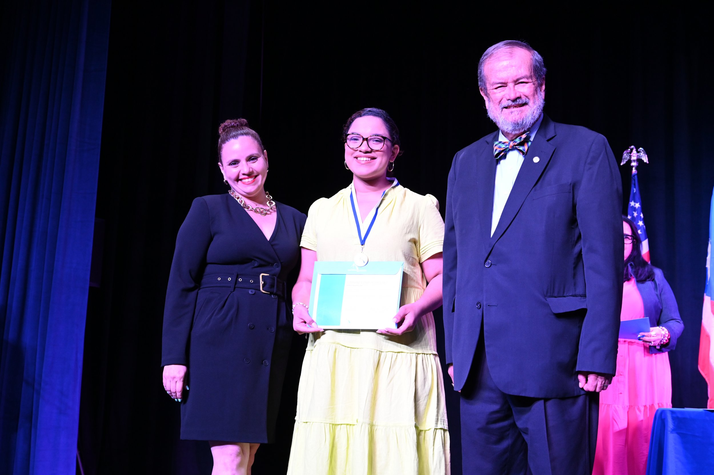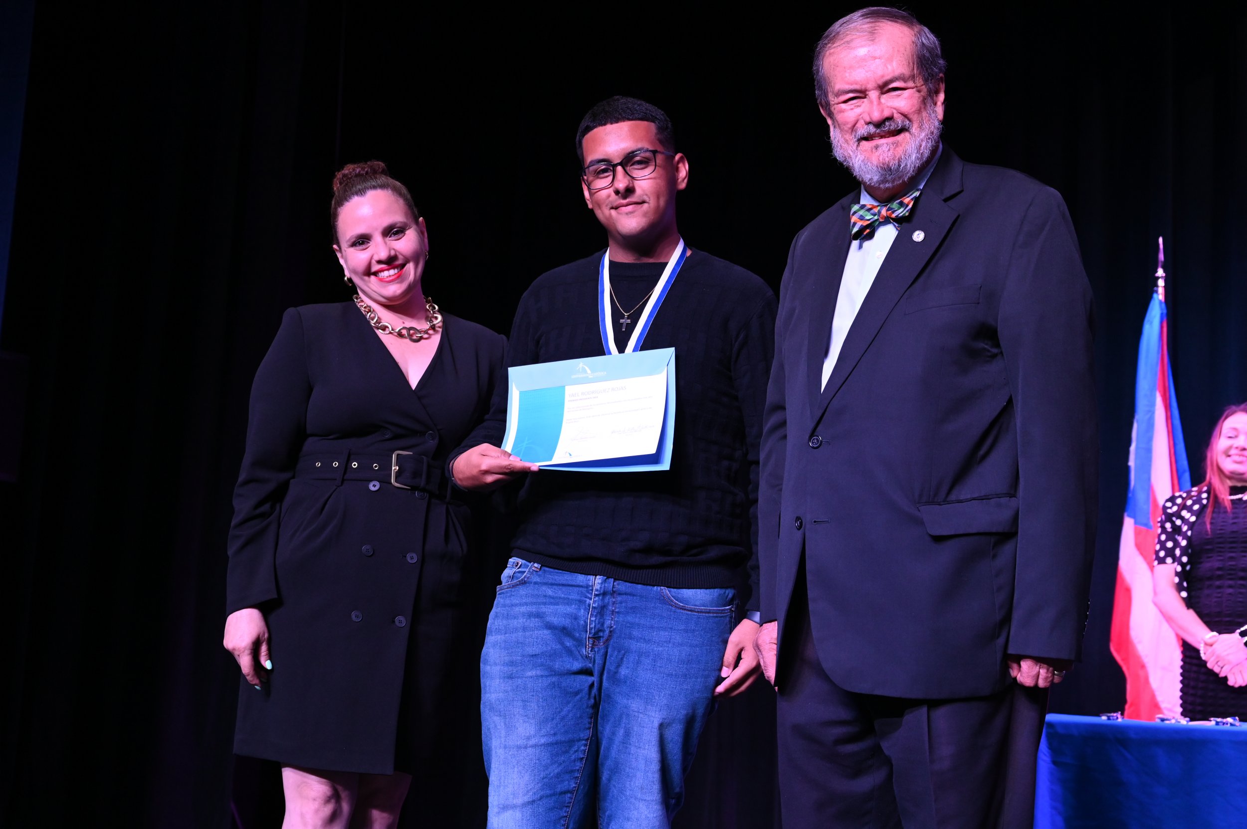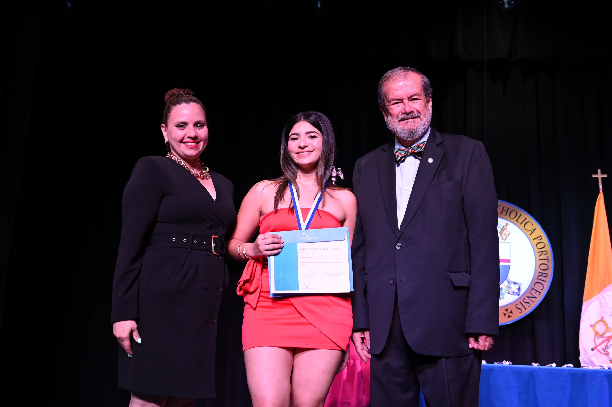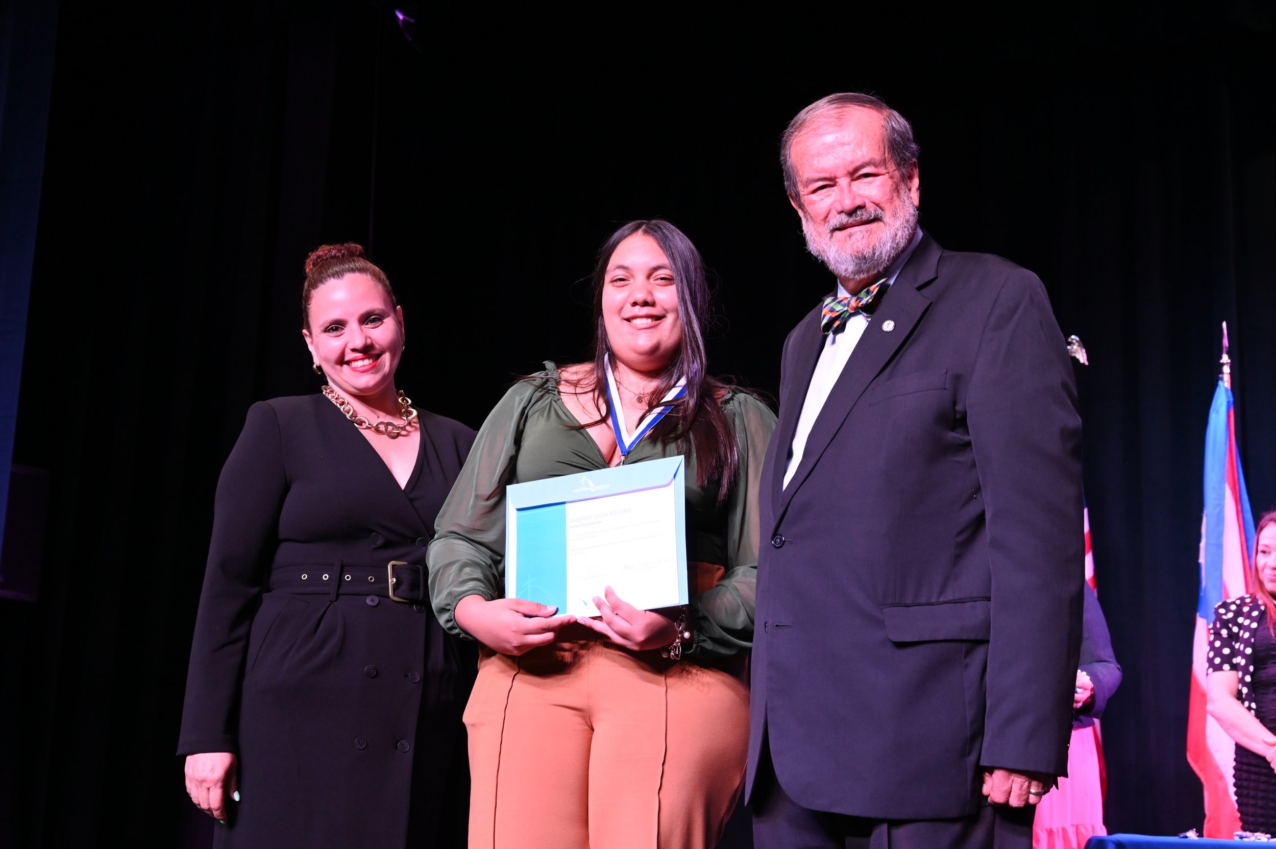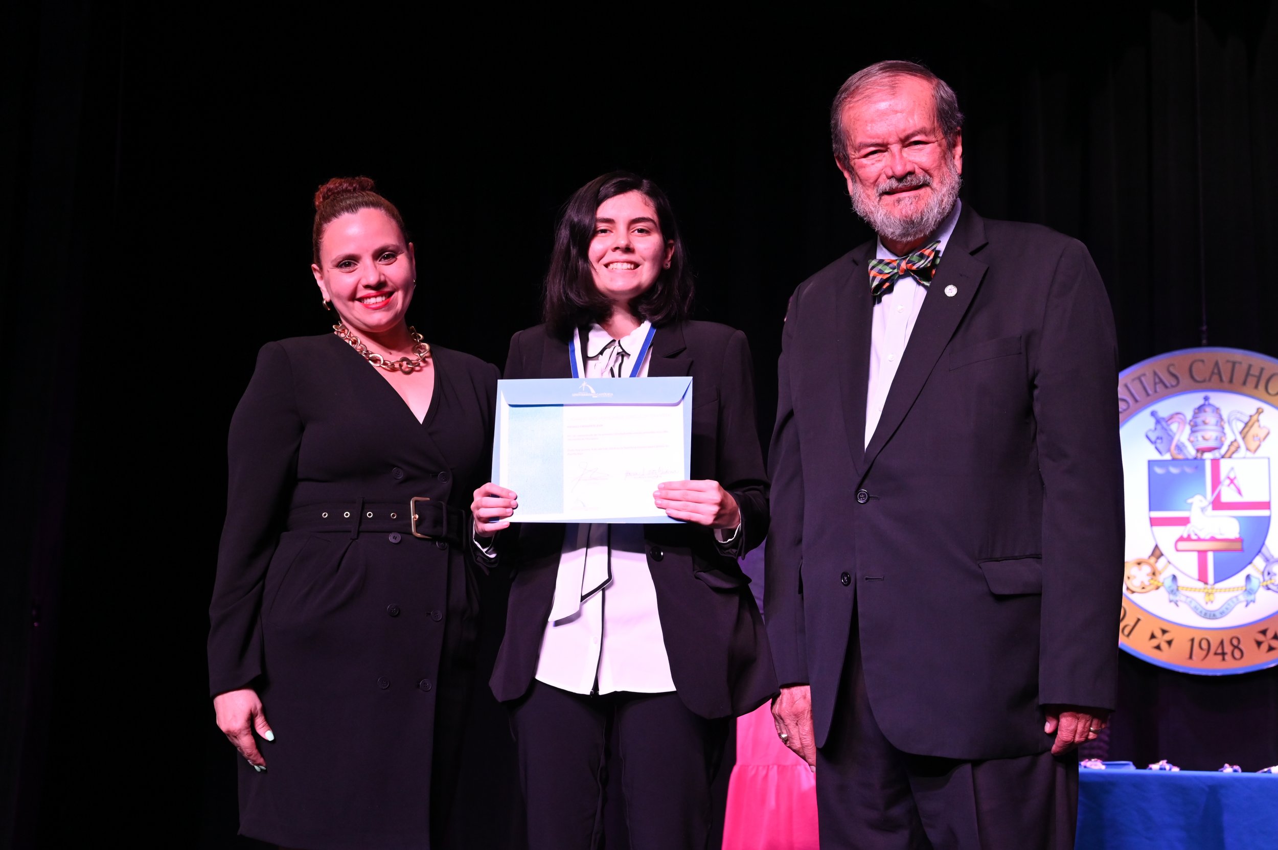 En una emotiva ceremonia celebrada en el Teatro de la PUCPR, los estudiantes recibieron este prestigioso premio de manos del Dr. Jorge I. Vélez Arocho, presidente de la PUCPR y de la rectora del recinto la Dra. Yaira Ortiz Medina. La rectora compartió su orgullo por los estudiantes galardonados: “Es la primera vez que celebro este premio junto a los estudiantes, y sobre todo junto al presidente, así que mi corazón está lleno de entusiasmo, de alegría y de emoción ”, mencionó la Dra. Ortiz.