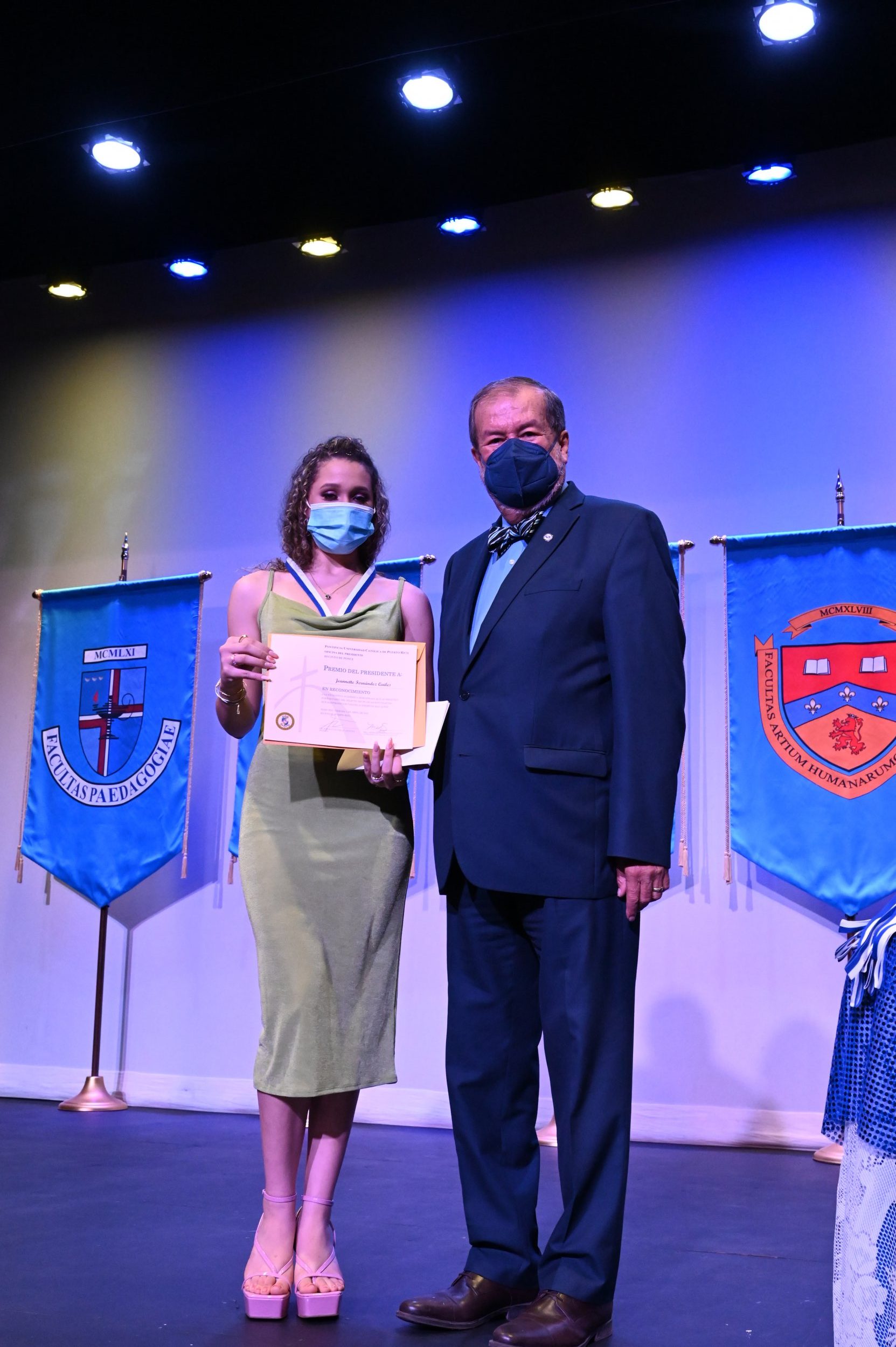 “Un estudiante que recibe el Premio del Presidente es un estudiante que se da cuenta que los estudios universitarios le brindan la oportunidad de prepararse grandemente en la vida con un objetivo de ser feliz, que es lo que Dios quiere para nosotros, y el objetivo de servir al projimo que, al fin y al cabo, es a lo que estamos llamados. Para mí es un privilegio estar con ustedes y hoy es la fiesta y la celebración de la esperanza. Los miro y pienso que el futuro del país está en buenas manos” expresó el Dr. Jorge Iván Vélez Arocho, presidente de la PUCPR.