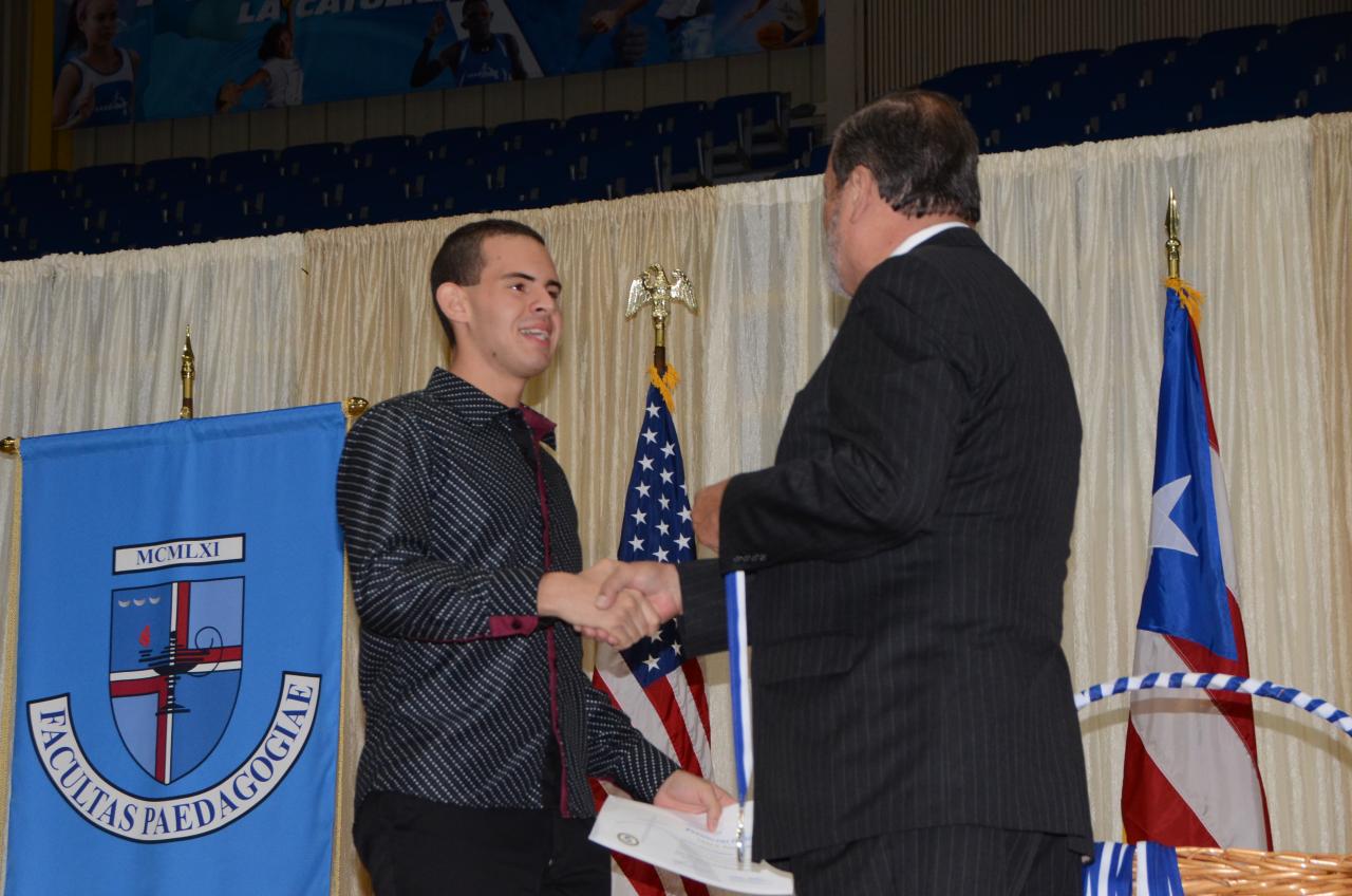 Los 100 estudiantes subgraduados con los promedios académicos más altos fueron reconocidos con el Premio del Presidente por su gran desempeño académico. El Dr. Jorge Iván Vélez Arocho, presidente de la PUCPR, estuvo a cargo de la entrega de la medalla que valida la distinción. La sexta edición de este reconocimiento fue celebrada el pasado martes, 26 de mayo de 2015. Este premio, que aplica solo a los estudiantes de nivel subgraduado, reconoce la excelencia académica de los Pioneros que obtuvieron el más alto promedio general acumulado.