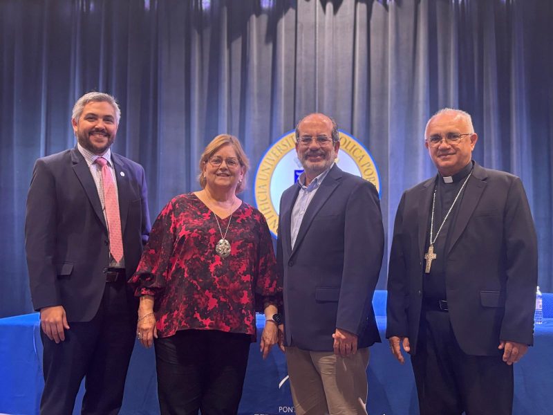 Distinguidos expertos en el tema profundizaron sobre este aspecto y plantearon propuestas enfáticas ante la realidad que vive el país. Conformaron el panel la Hon. Liana Fiol Matta, pasada presidenta del Tribunal Supremo de Puerto Rico y catedrática de la Escuela de Derecho de la PUCPR; Mons. Ángel L. Ríos Matos, obispo de la diócesis de Mayagüez; y el Lcdo. Aníbal Acevedo Vilá, exgobernador de Puerto Rico.