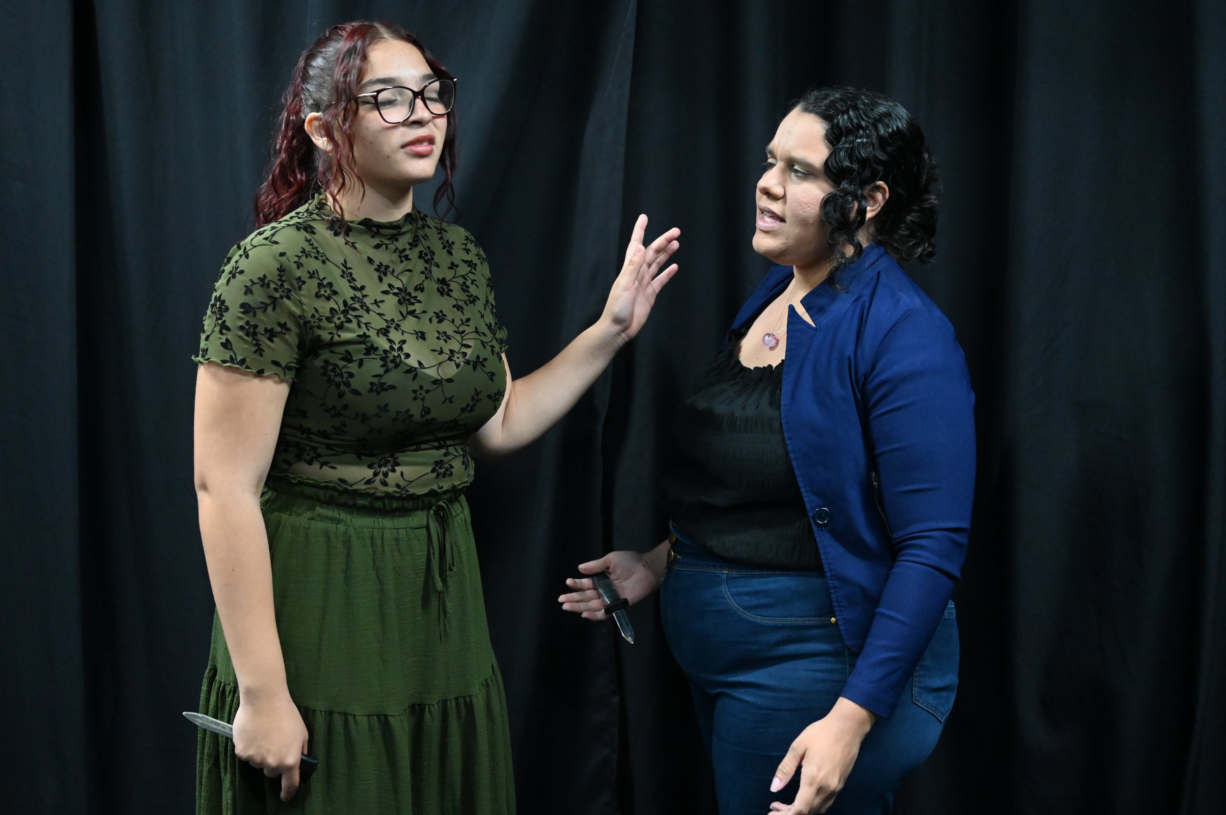 Dos caminos de creación colectiva fue otra de las obras presentadas y cuya trama gira en torno a los los sacrificios que el ser humano realiza por lograr sueños y hasta dónde está dispuesto a llegar para salir victoriosos en la competencia de la vida o la muerte. En la pieza participaron como actrices: Jarimar Rodríguez, Eugenia Andrea González, Mariel Joan Soto Morales con la dirección artística de Neishaly Montero Torres.