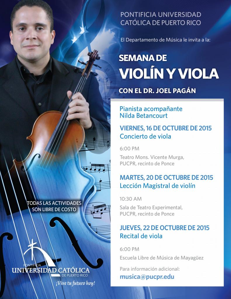 Semana de violín y viola By celimer_torres@pucpr.edu | October 9, 2015 Posted in Actividades, Cultura ← “La educación se ata a todos los problemas que nos afectan como sociedad”Agenda Cultural →